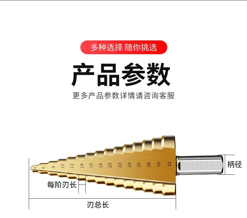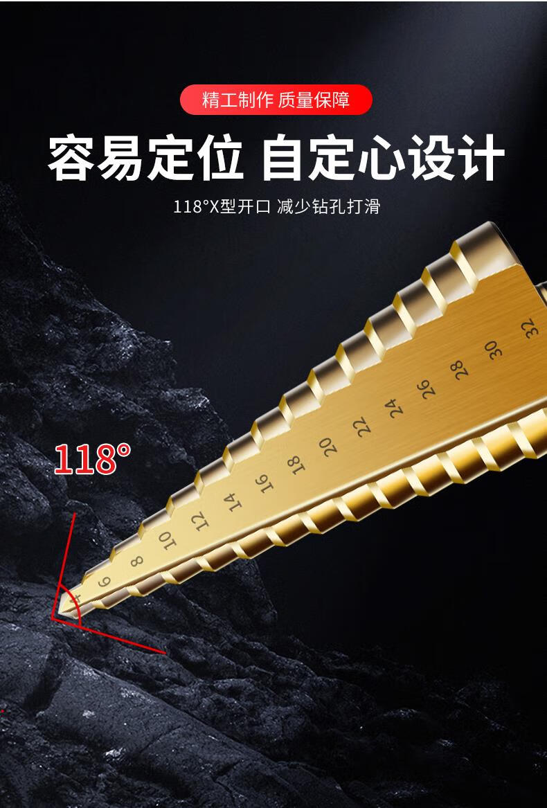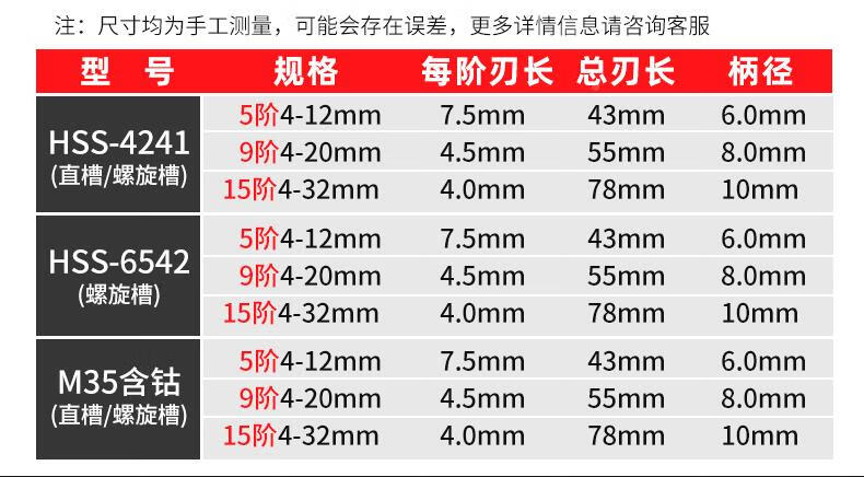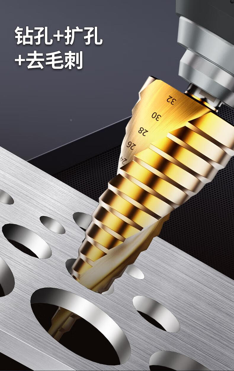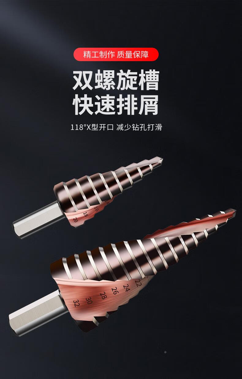 JCZS German brand pagoda drill bit, high hardness, cobalt-containing stainless steel hole opener, special tower type reaming drill bit for steel, straight groove (three-piece set), ultra-durable type