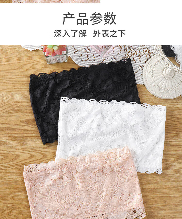 Mingyuegui tube top bra for women, anti-exposure, inner layer, lace, breathable, thin, one piece, strapless, black + white two-piece, one size fits all (suitable for 80-120 Jin Jin equals 0.5 kg)
