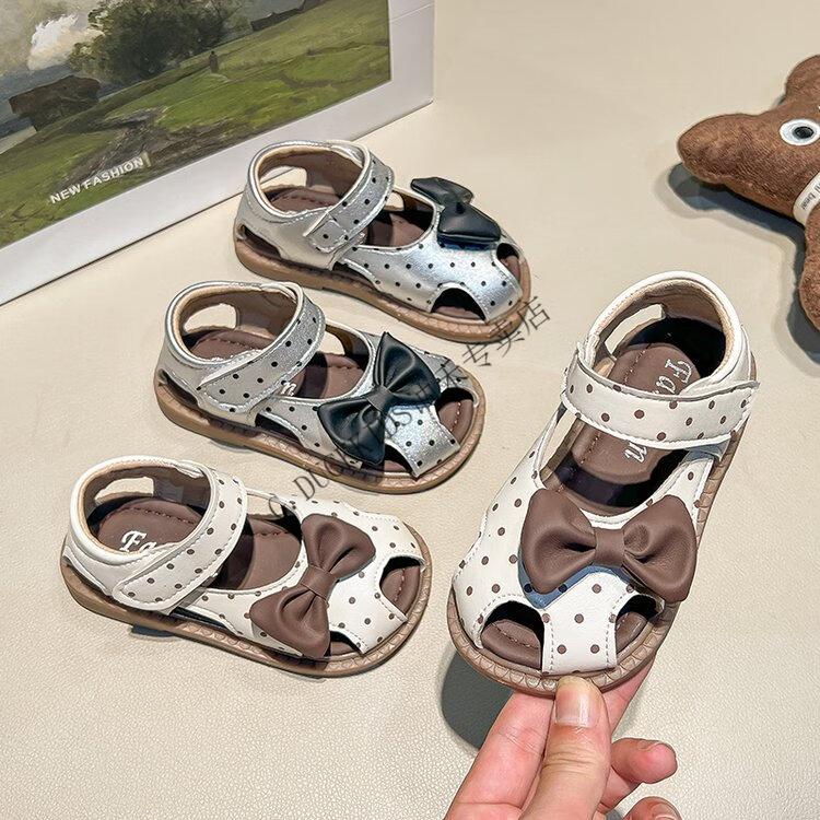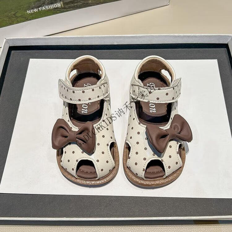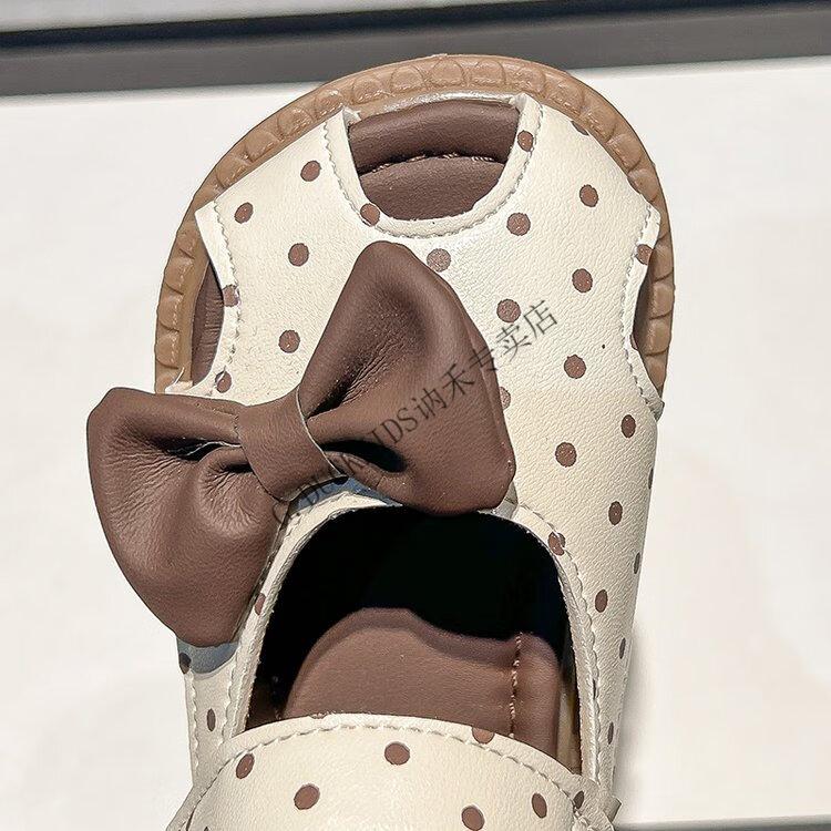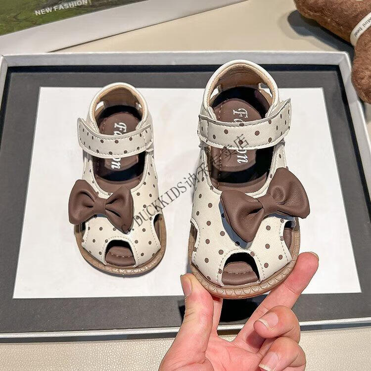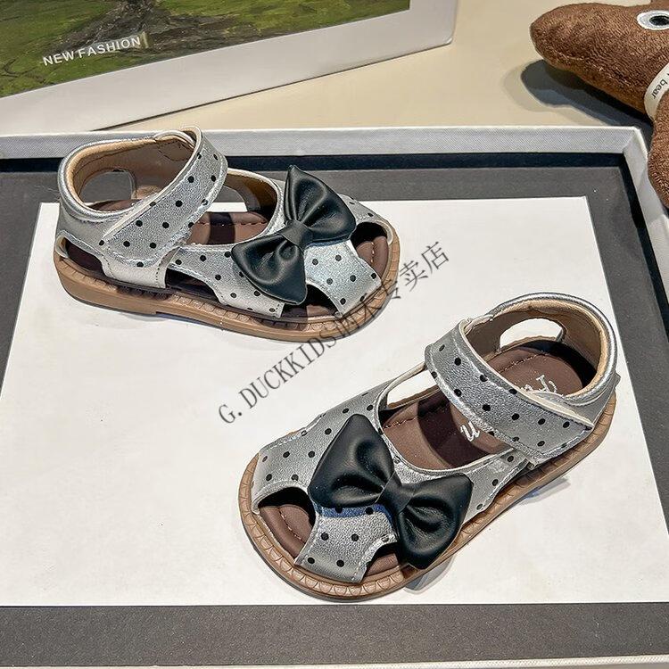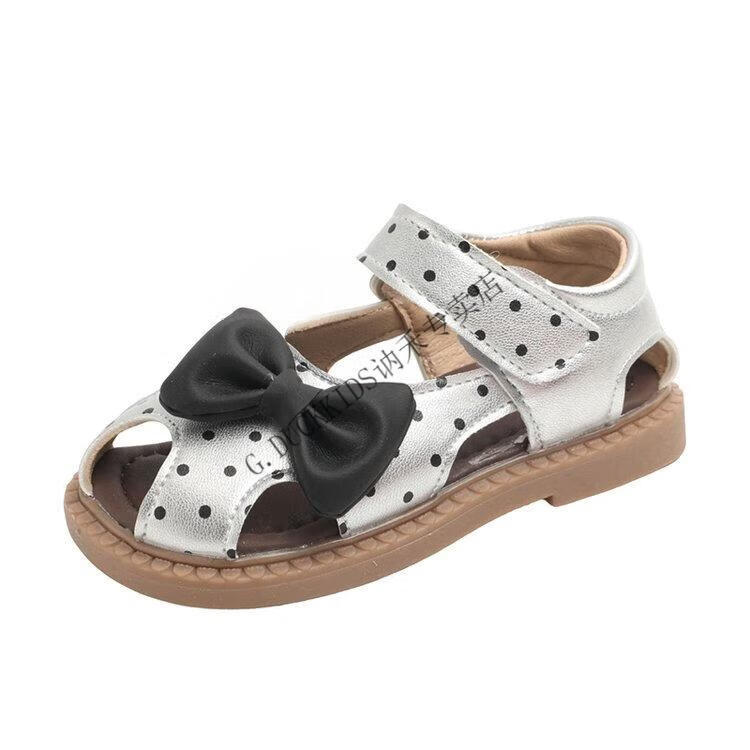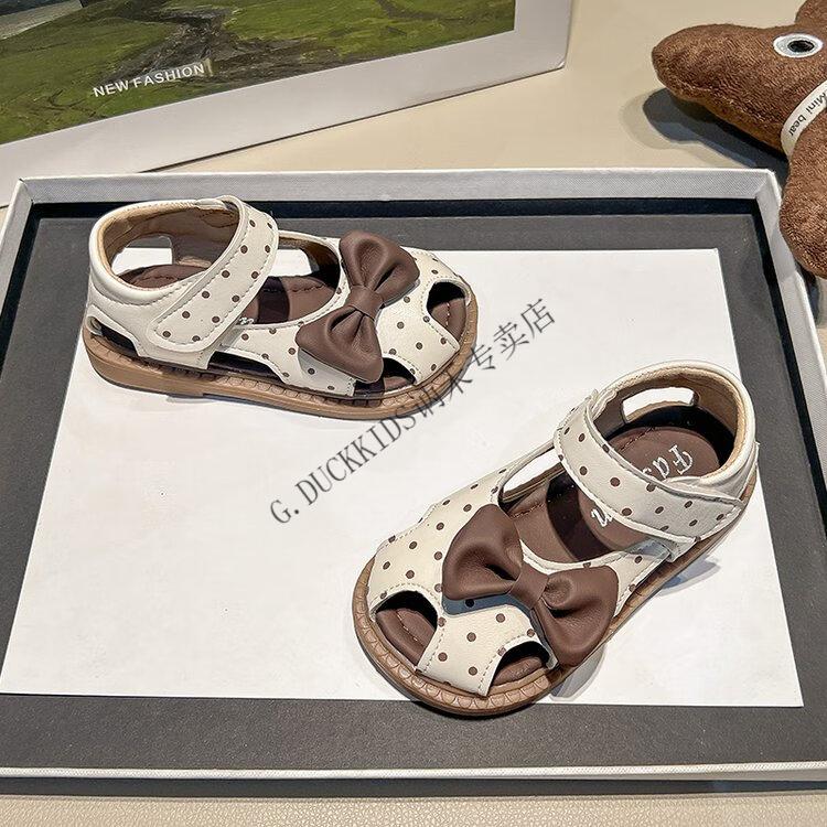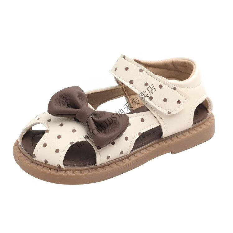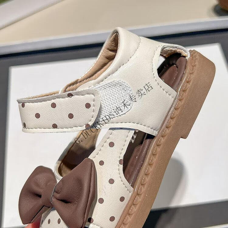 G.duck Little Yellow Duck Girls Sandals 2025 Summer New Children's Baotou Hollow Girls Baby Polka Dot Princess Boken Shoes Off-White 22