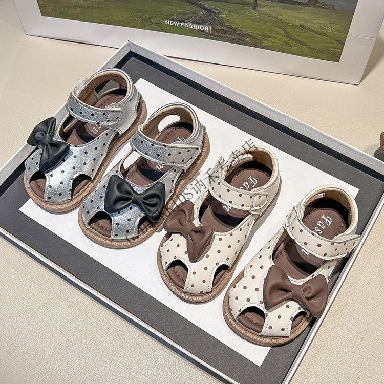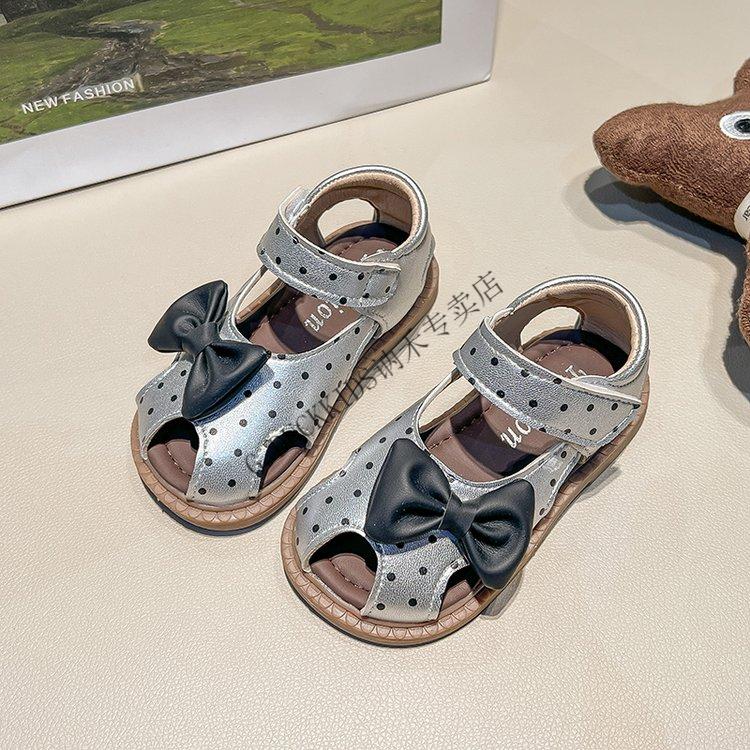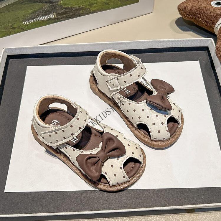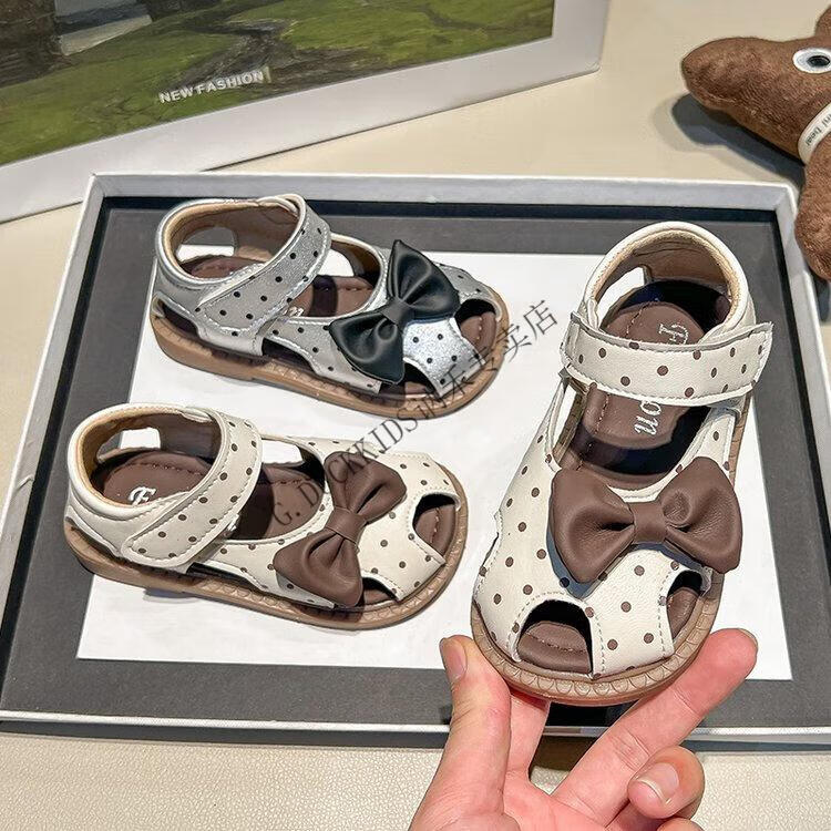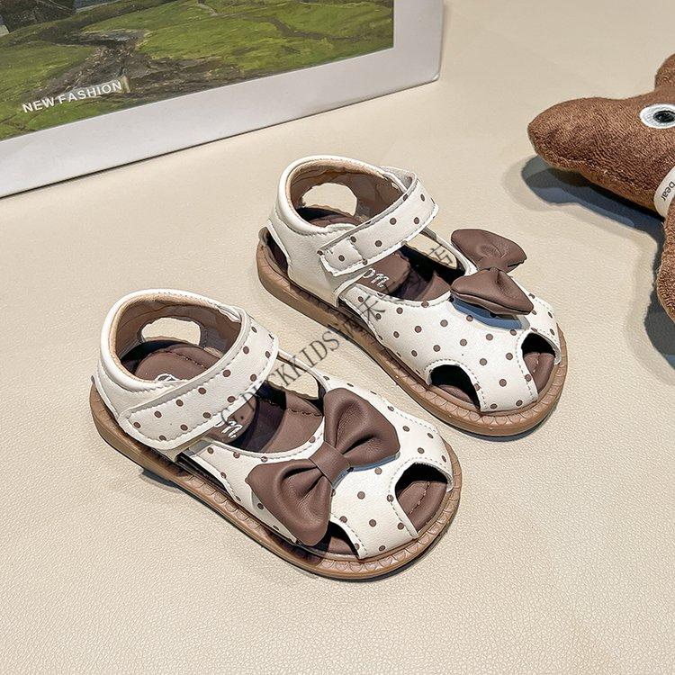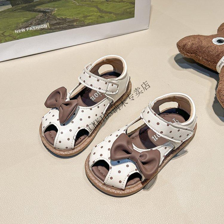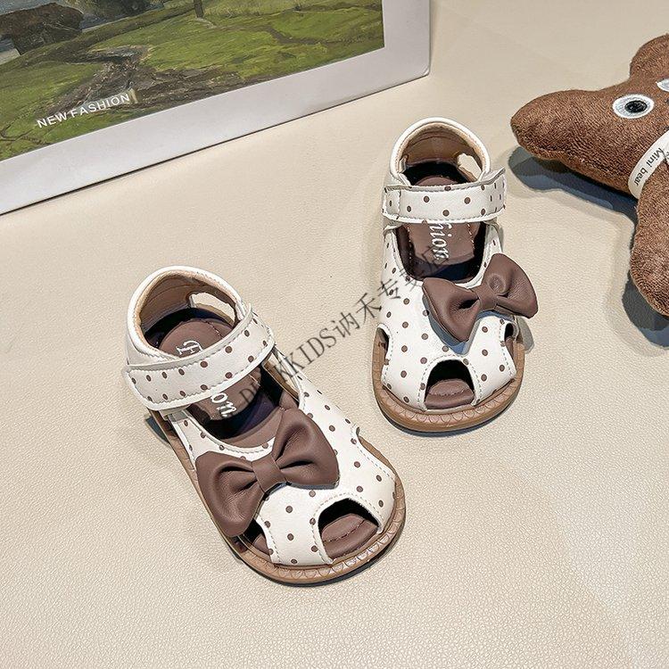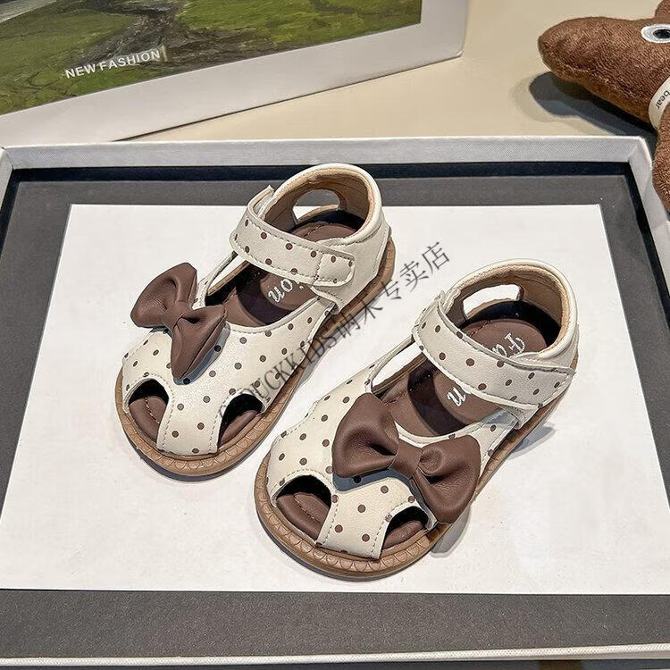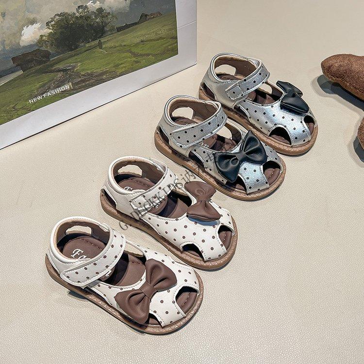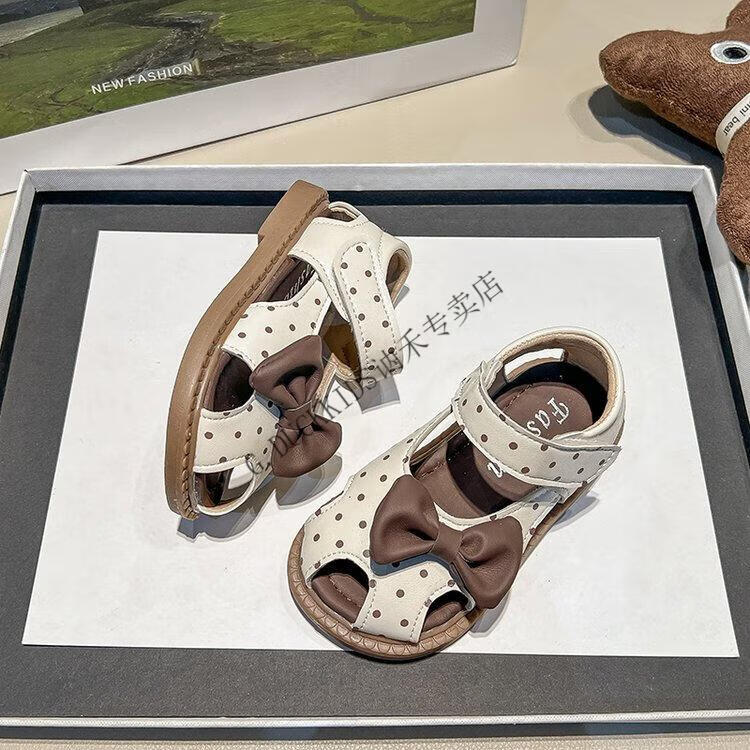 G.duck Little Yellow Duck Girls Sandals 2025 Summer New Children's Baotou Hollow Girls Baby Polka Dot Princess Boken Shoes Off-White 22