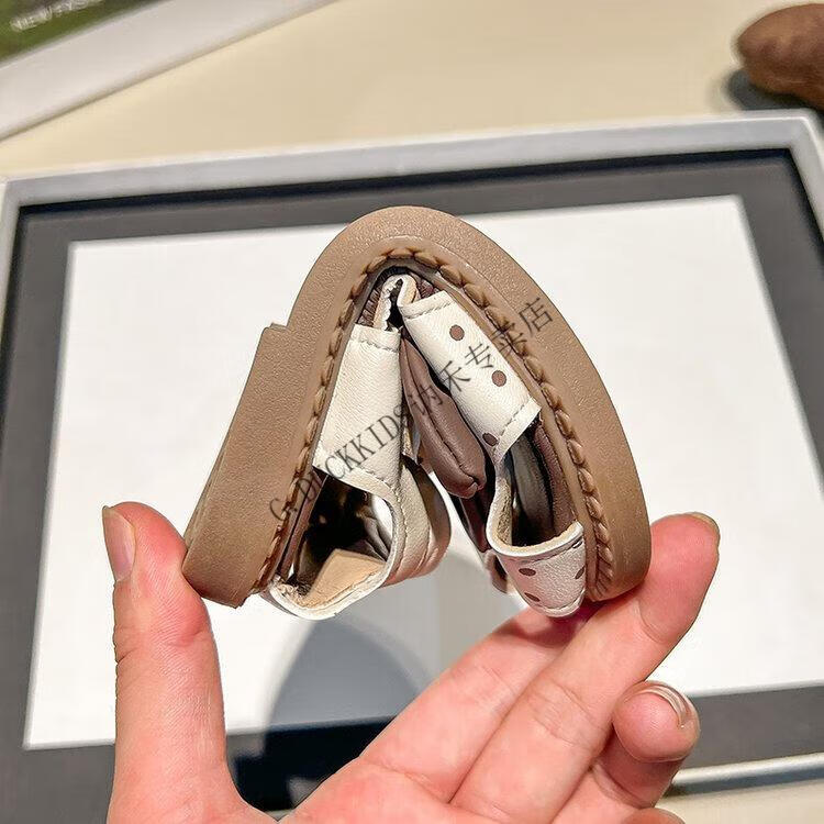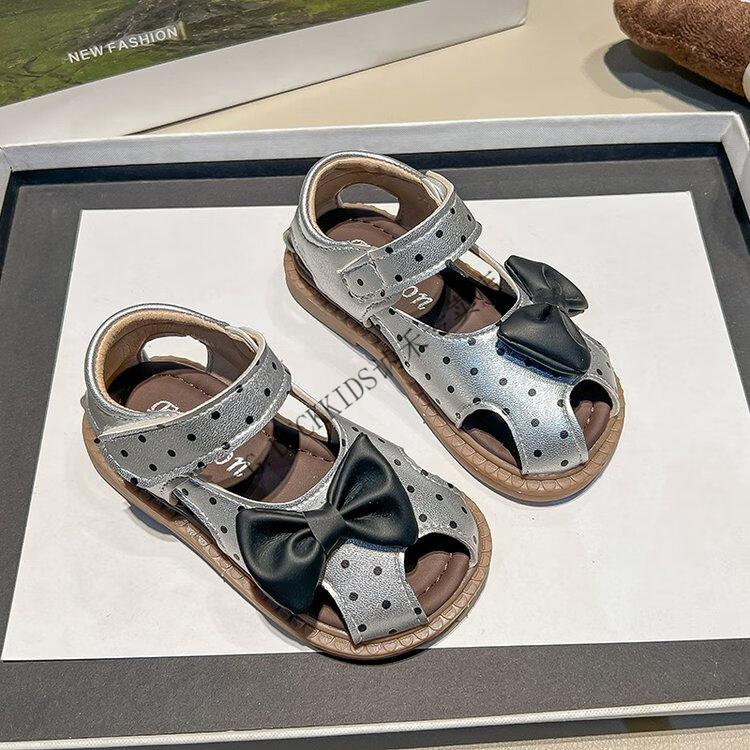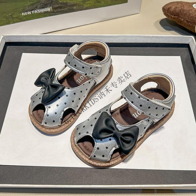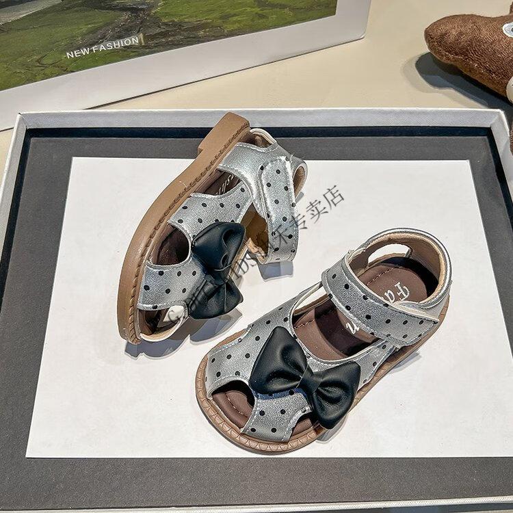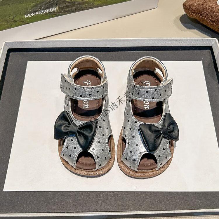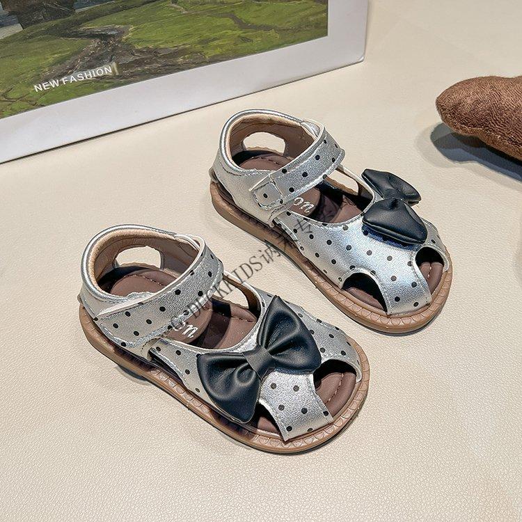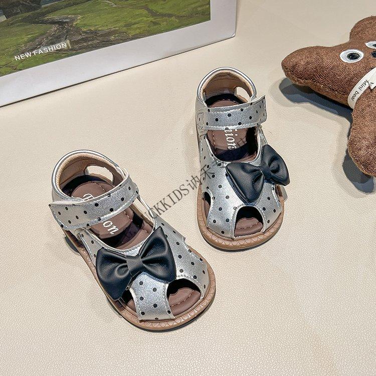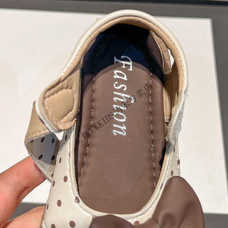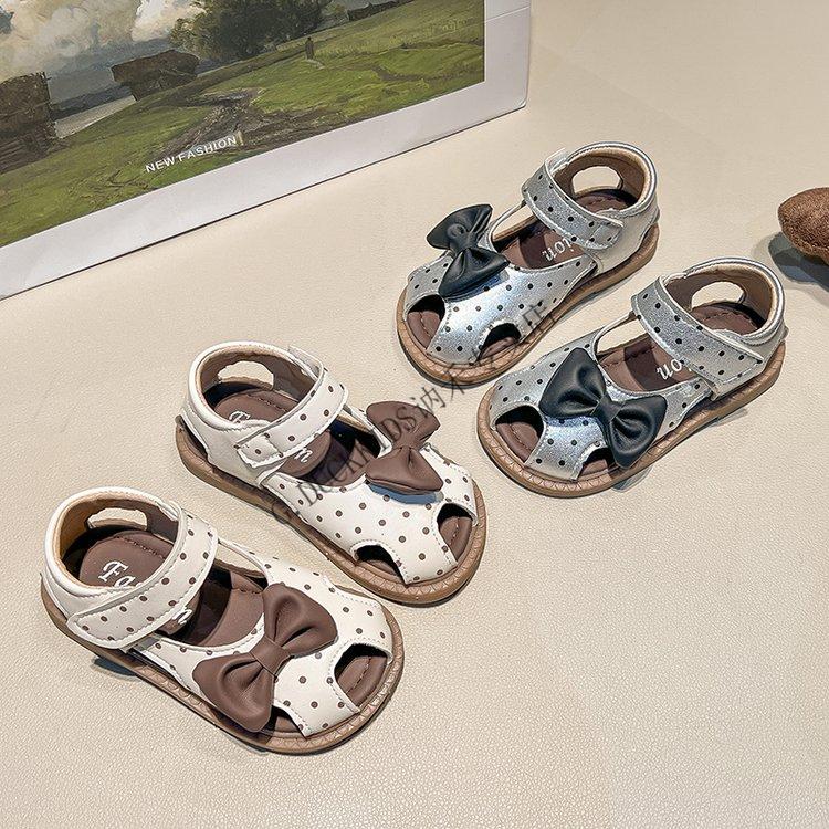 G.duck Little Yellow Duck Girls Sandals 2025 Summer New Children's Baotou Hollow Girls Baby Polka Dot Princess Boken Shoes Off-White 22