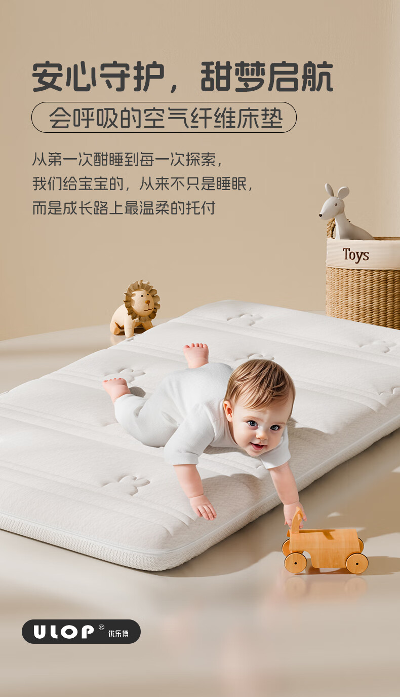 ULOP baby mattress air fiber spliced mattress double-sided comfortable baby special sleeping pad children's mattress customized 4D air fiber mattress 105*60*7.5cm environmental protection ridge complete set removable and washable