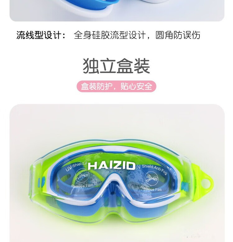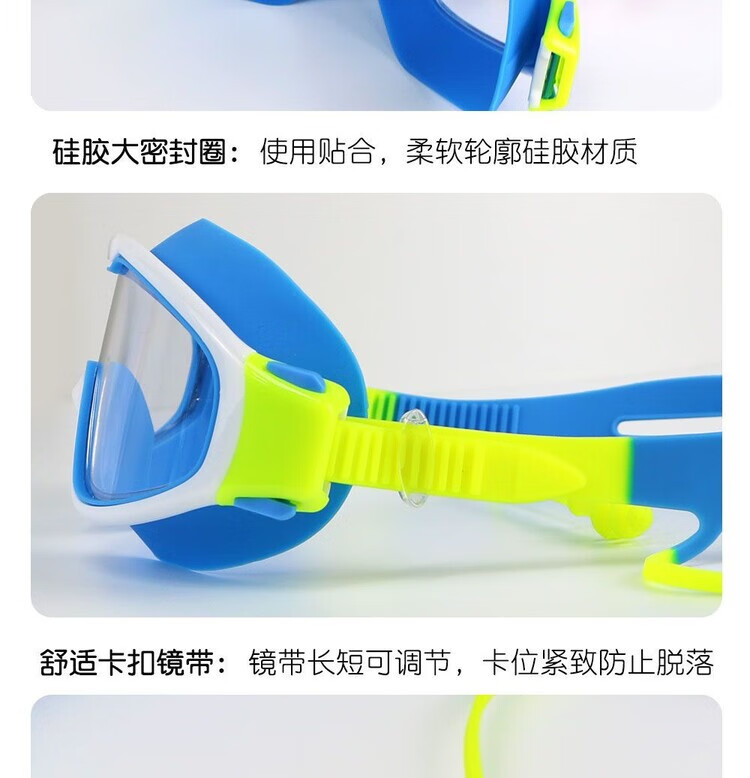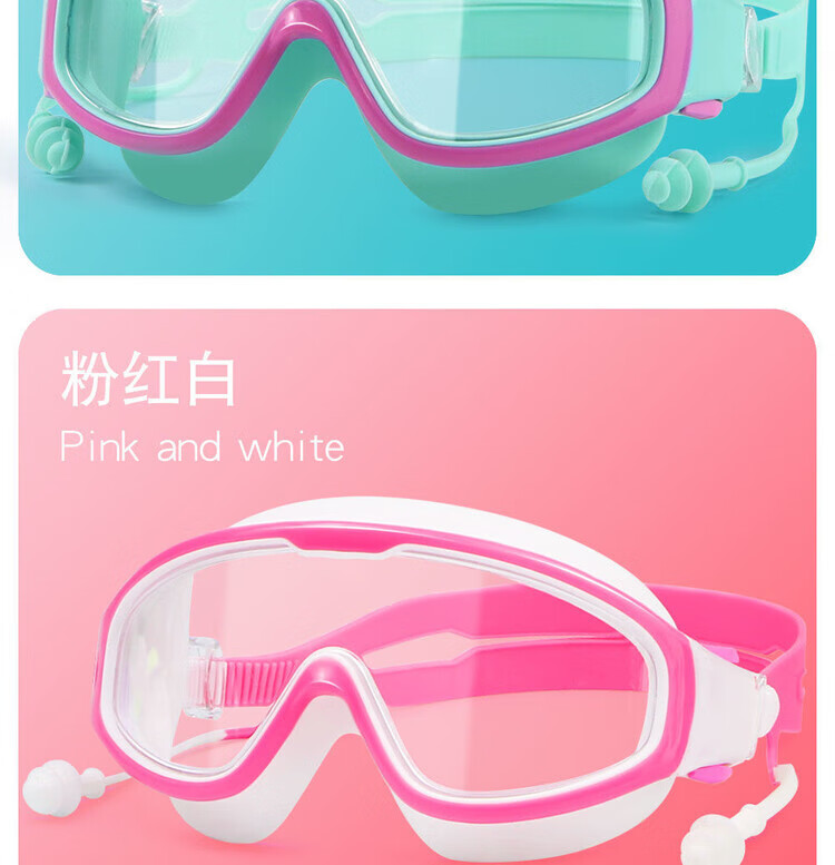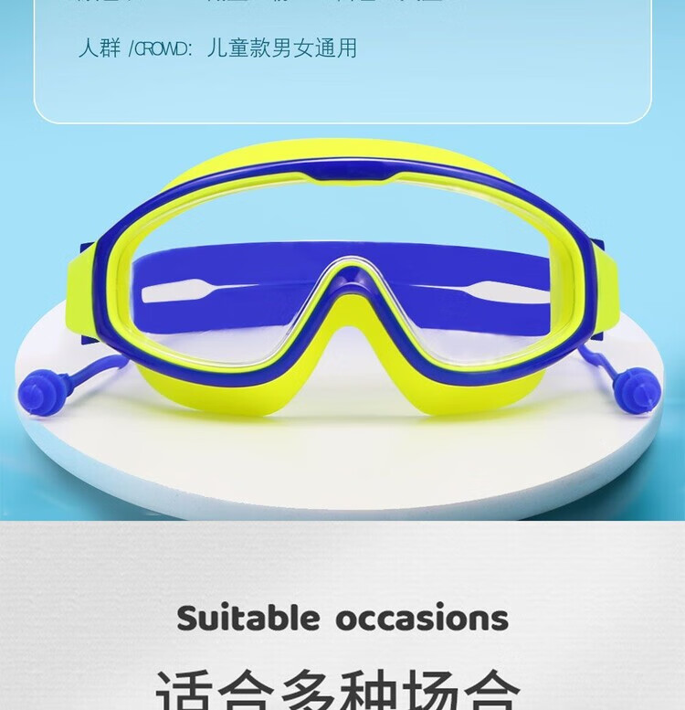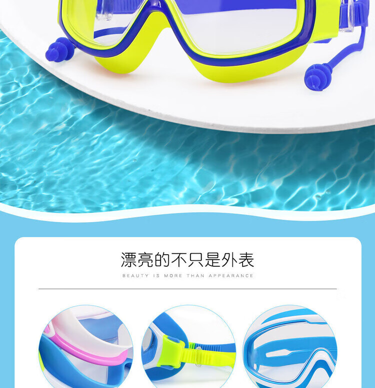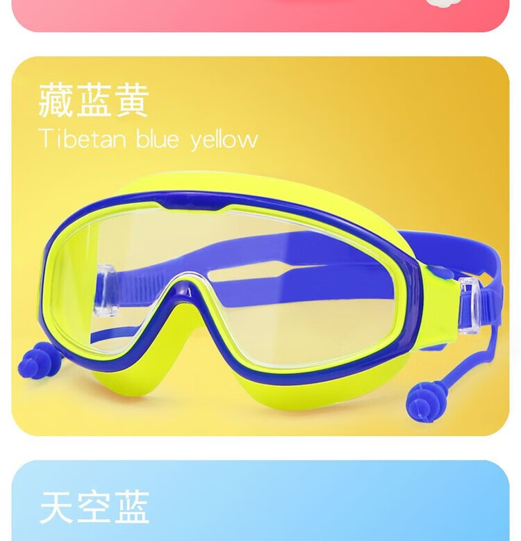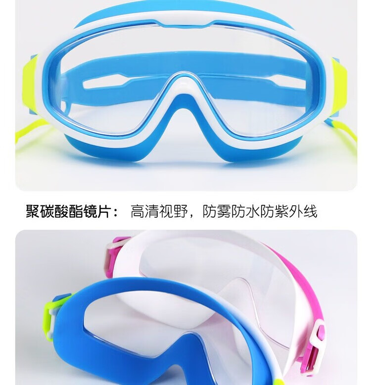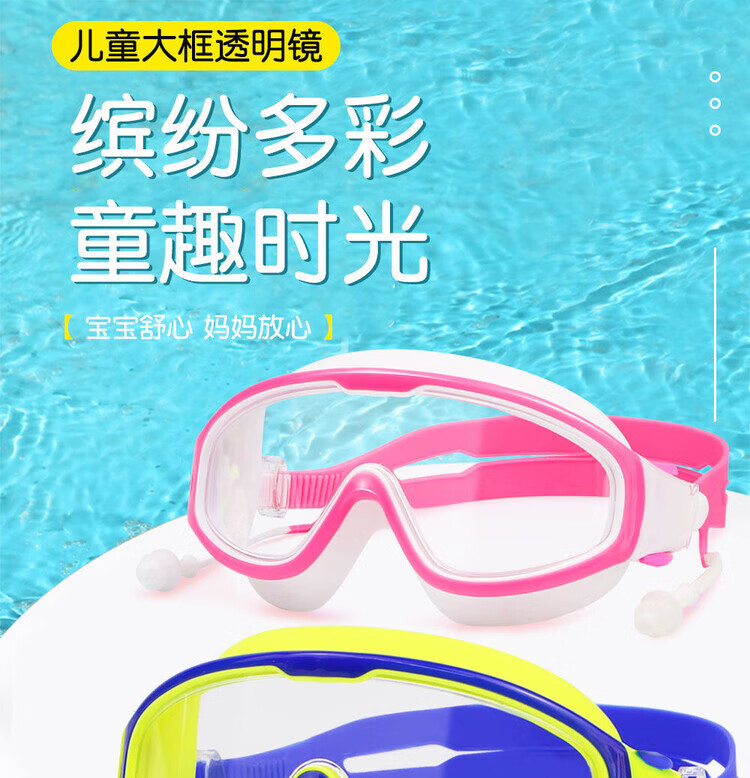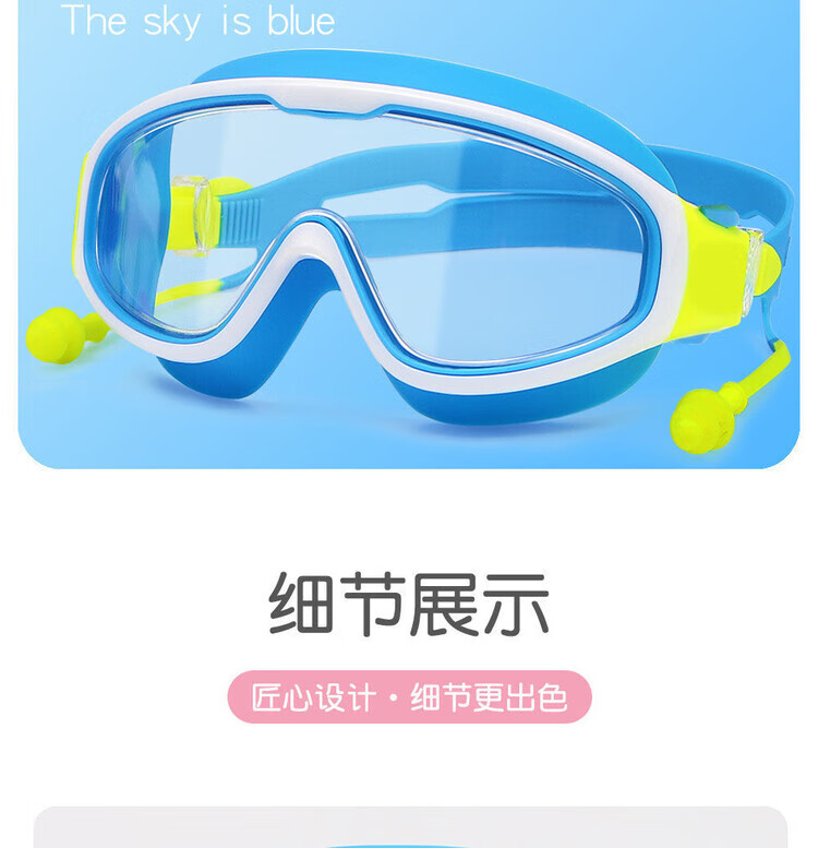 Children's goggles 6-12 large frame swimming goggles waterproof and anti-fog high-definition transparent swimming goggles for boys and girls diving set single swimming goggles (boxed) + nose clip earplugs electroplating-sky blue children's style