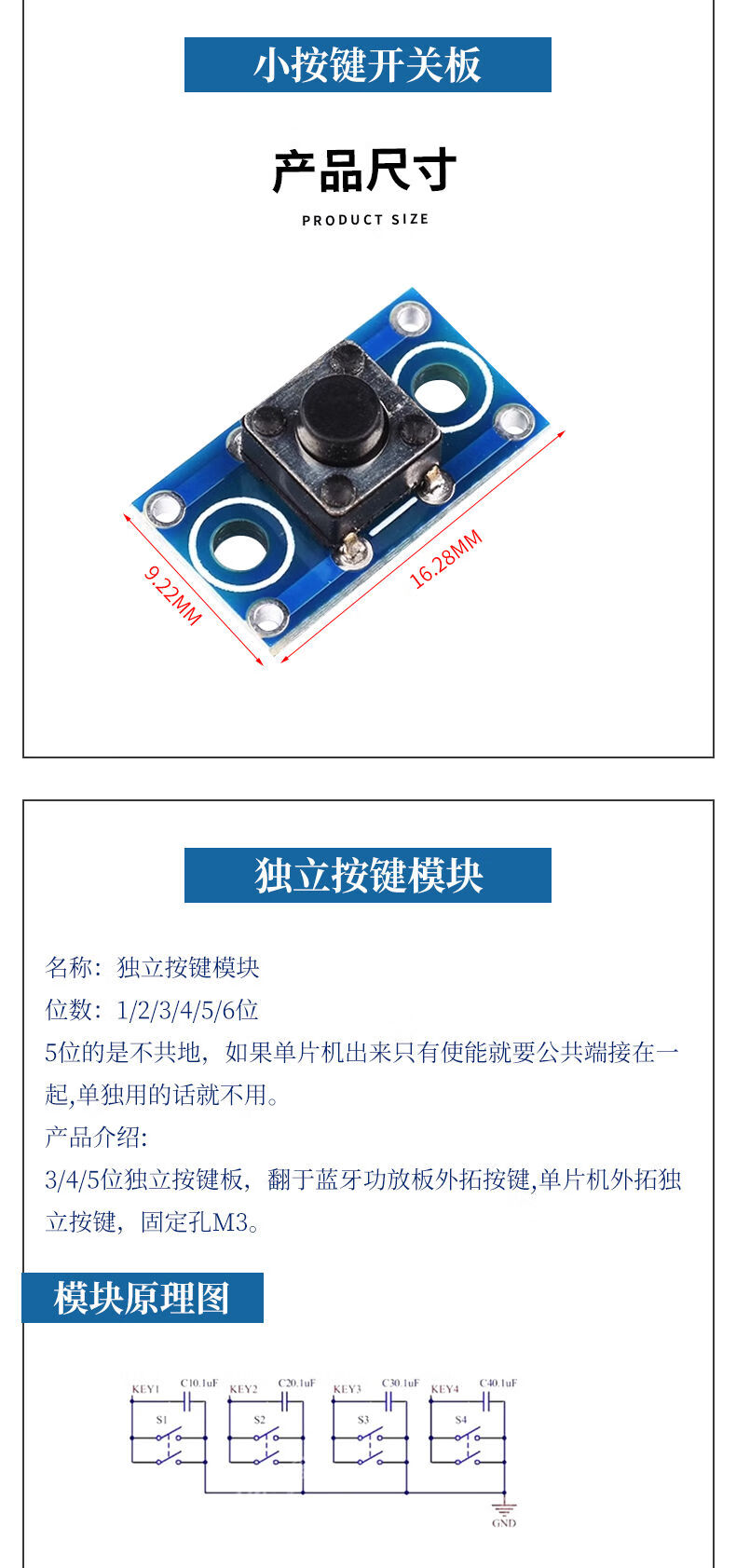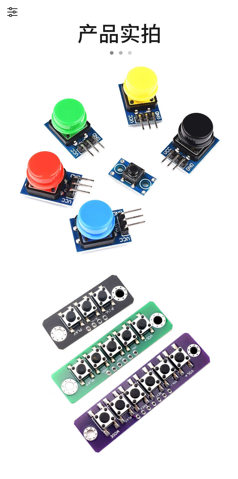Large button module, light touch with cap, 7-color set, touch button switch board, electronic building block button control, 5-piece set with mounting holes