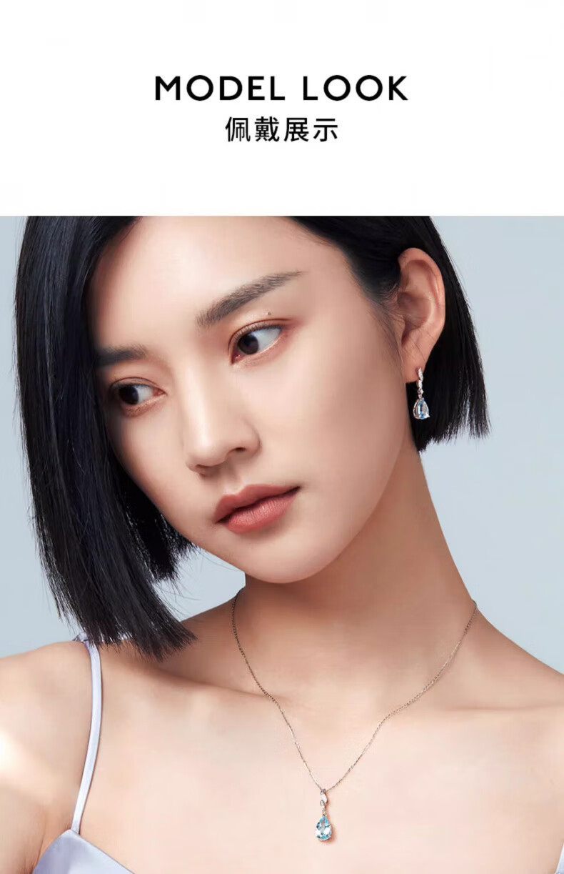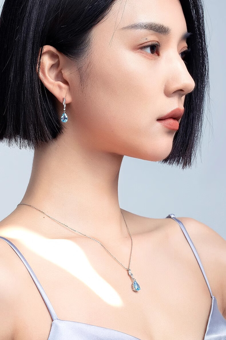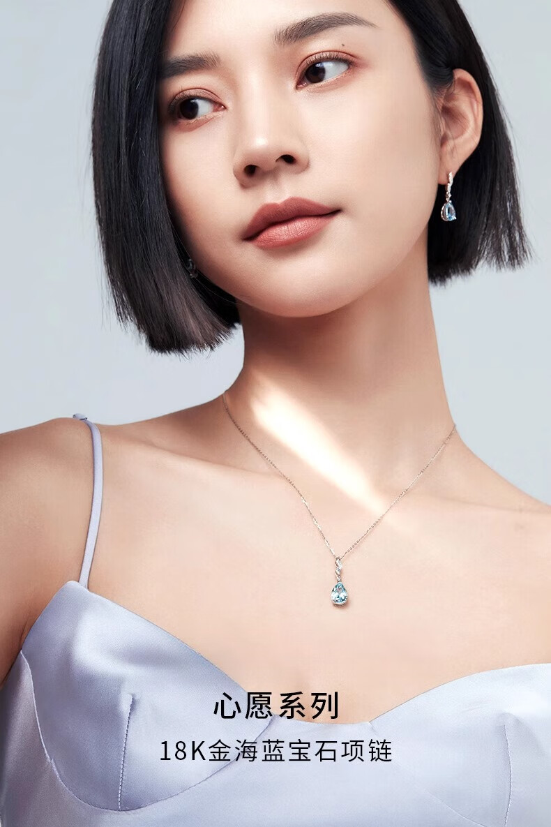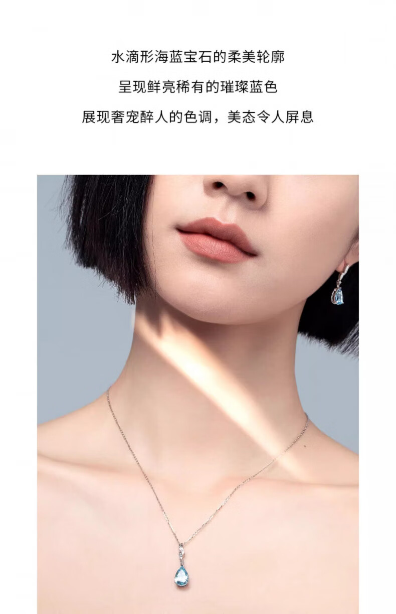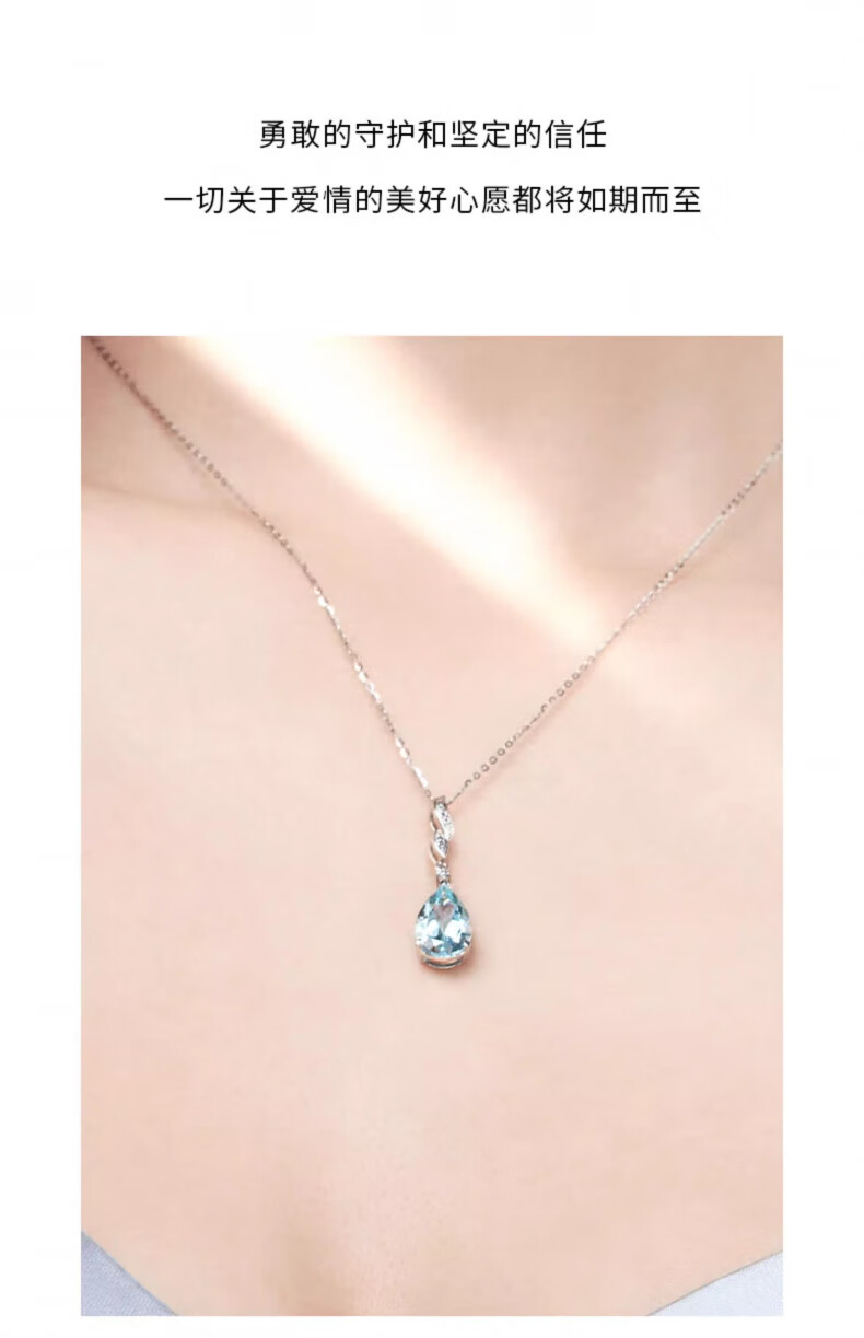 Feilepu Necklace for Women 18K Gold Aquamarine Pendant Valentine's Day Gift for Wife and Girlfriend Birthday 18K Gold Aquamarine Pendant + Silver Chain