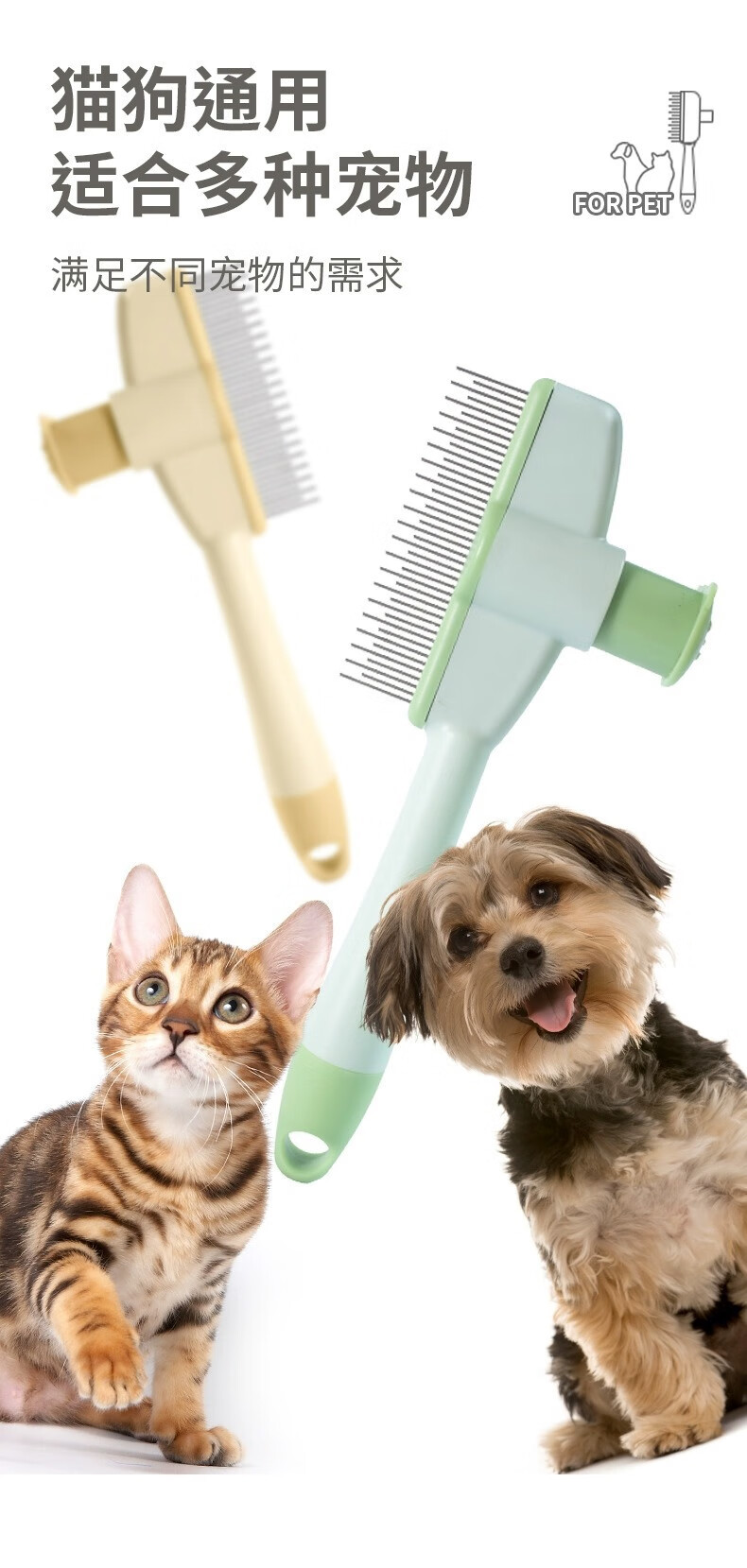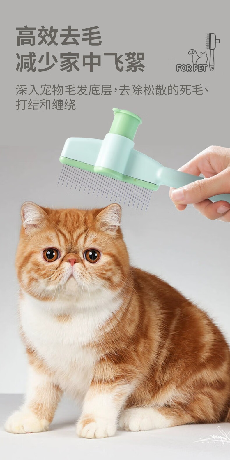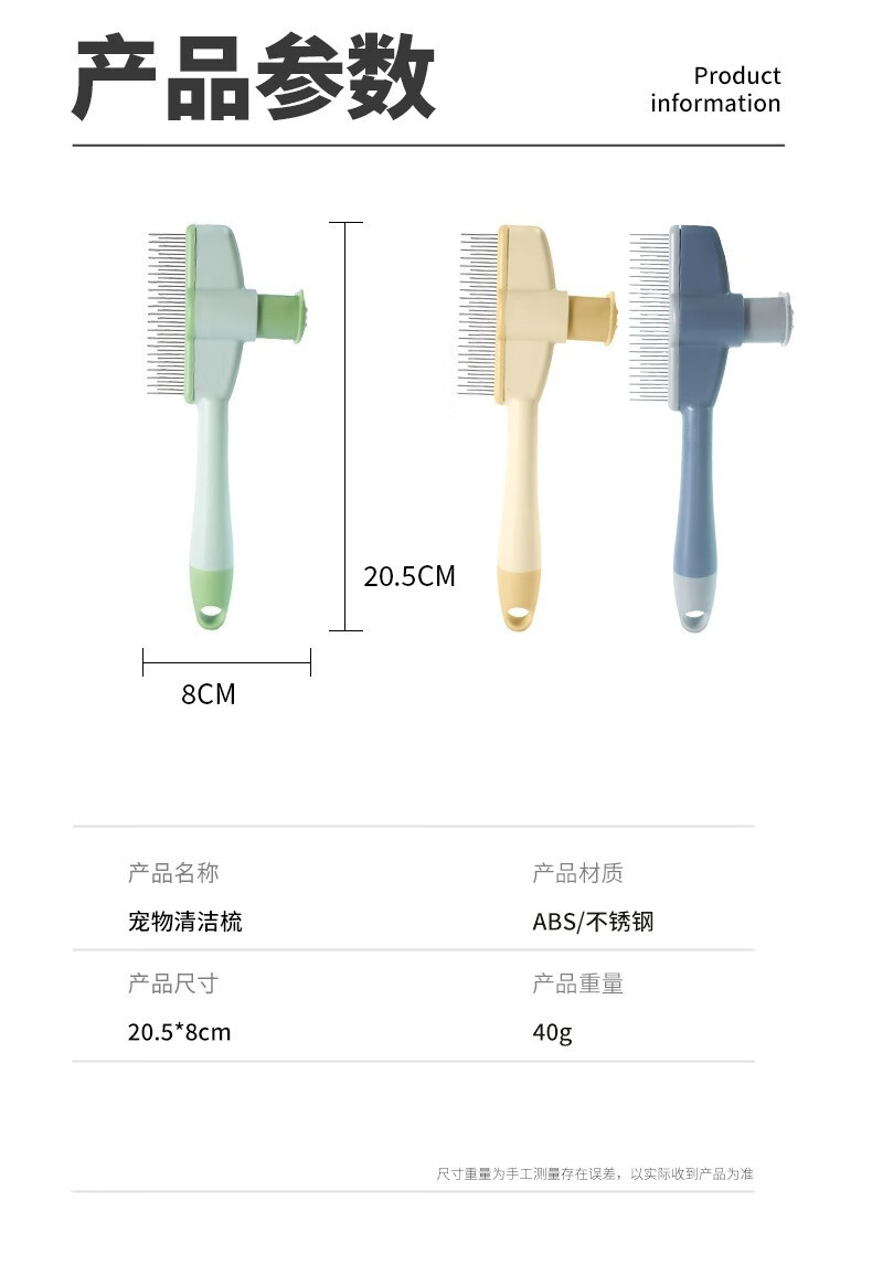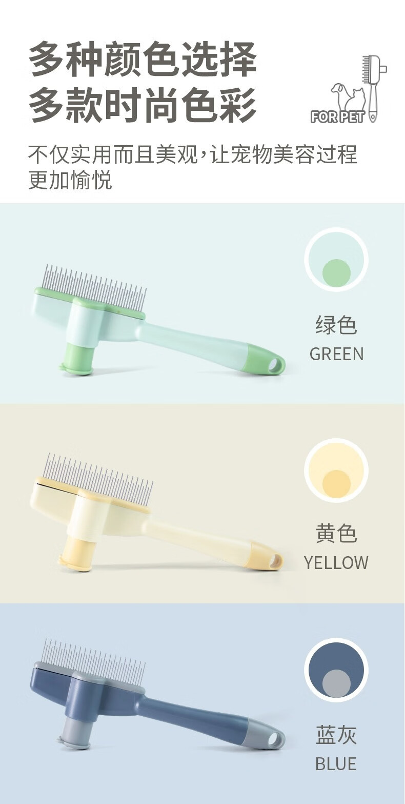 Cat comb to remove floating hair, needle combing brush, dog hair and cat hair cleaner, special pet short hair removal comb for cats with long hair, pet cleaning comb, green pet supplies