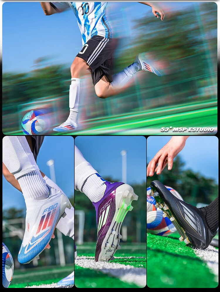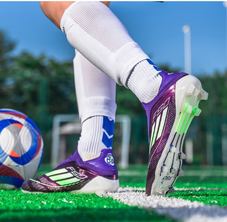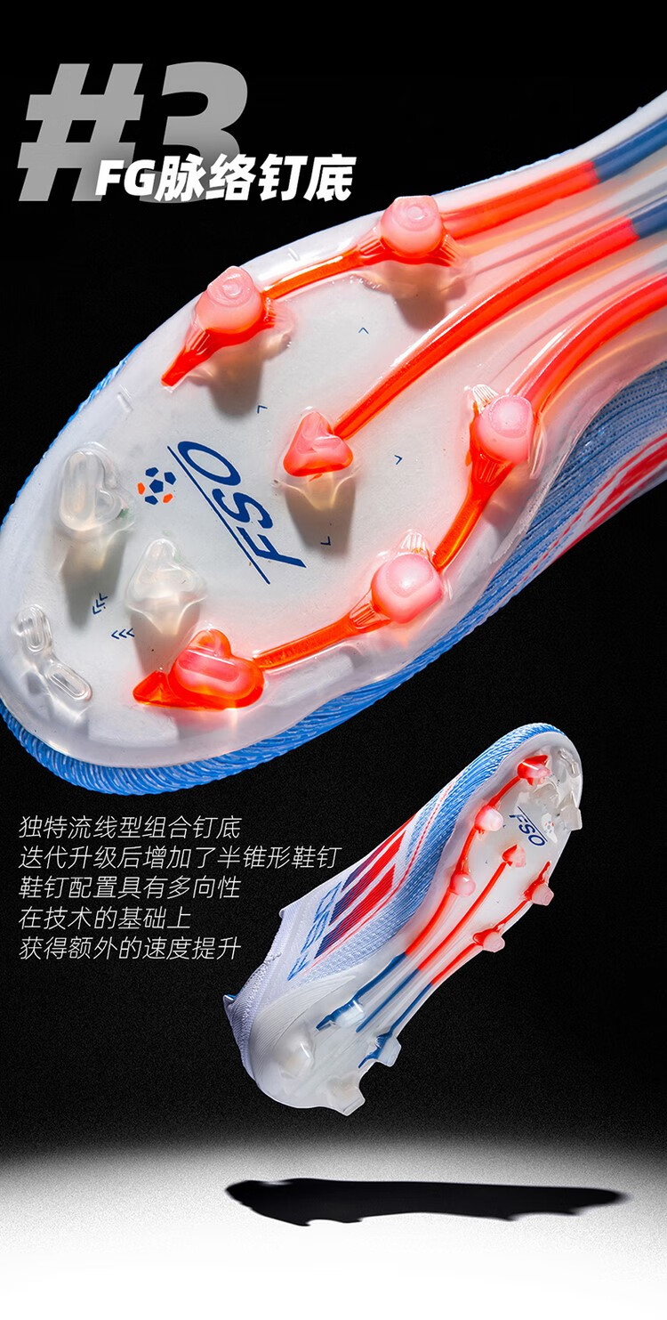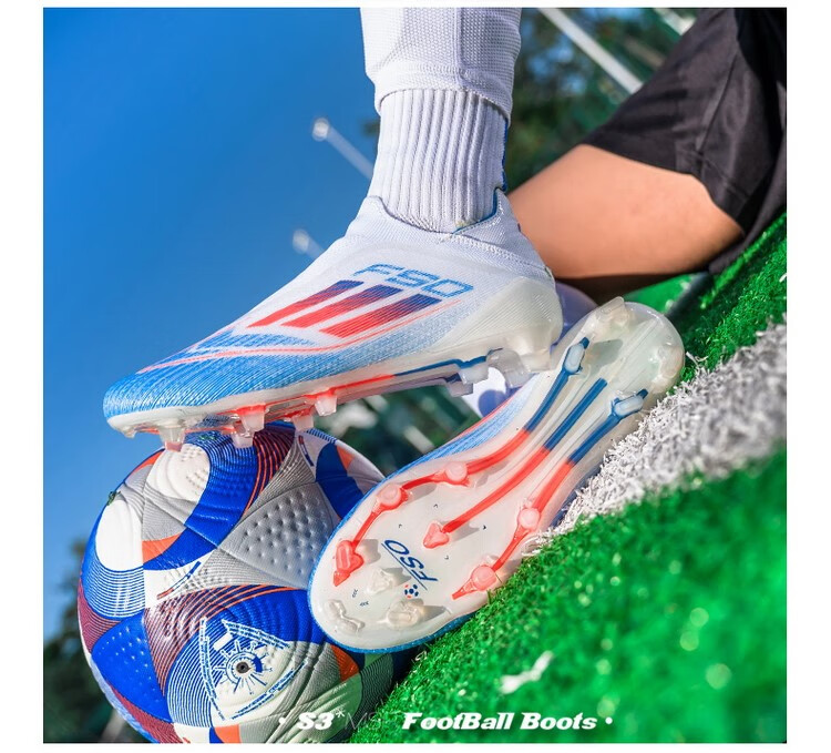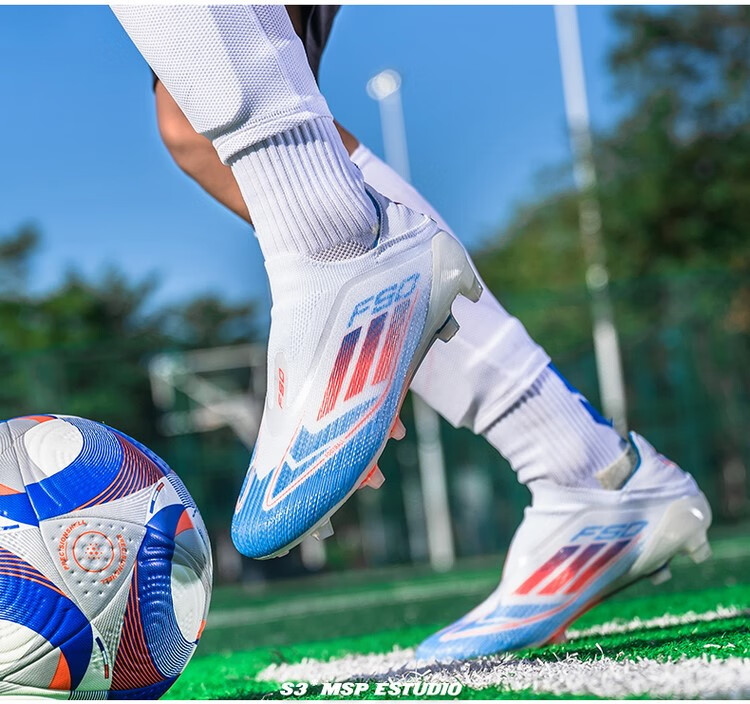 F50 New Football Shoes for Young Students High School Entrance Examination Special Competition Sports Shoes Non-slip and Wear-Resistant Long Spikes F50-Glacier Blue Spike Flagship Store High Quality 37 Size