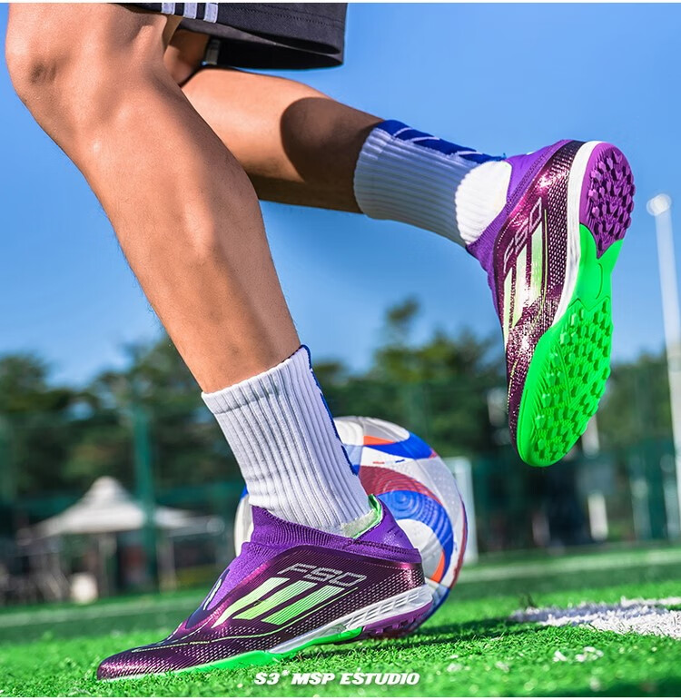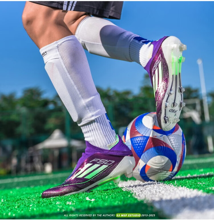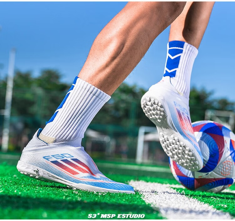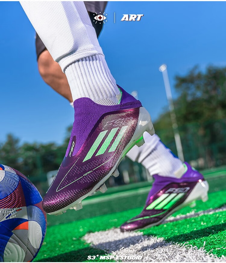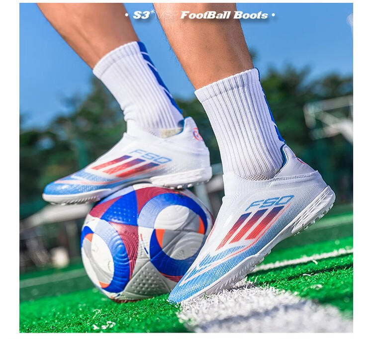 F50 New Football Shoes for Young Students High School Entrance Examination Special Competition Sports Shoes Non-slip and Wear-Resistant Long Spikes F50-Glacier Blue Spike Flagship Store High Quality 37 Size