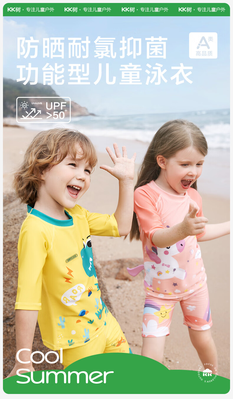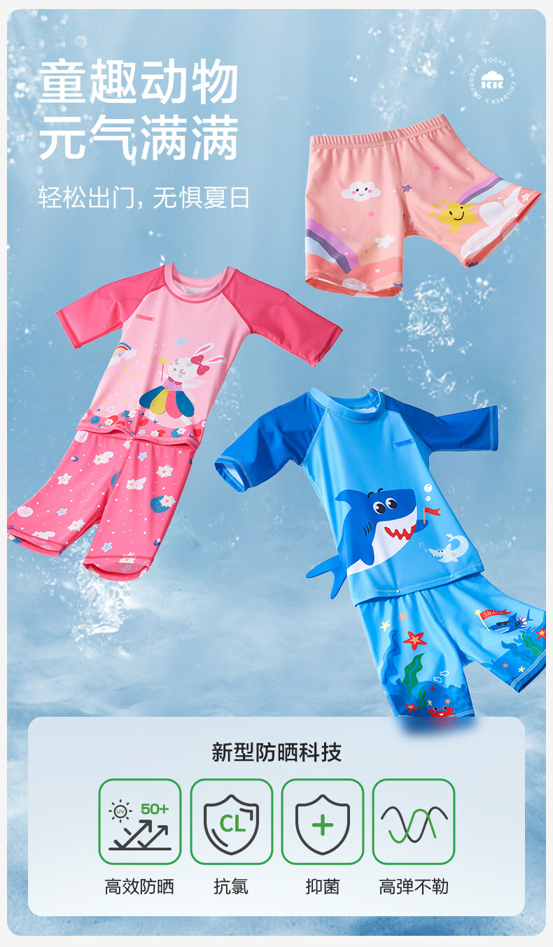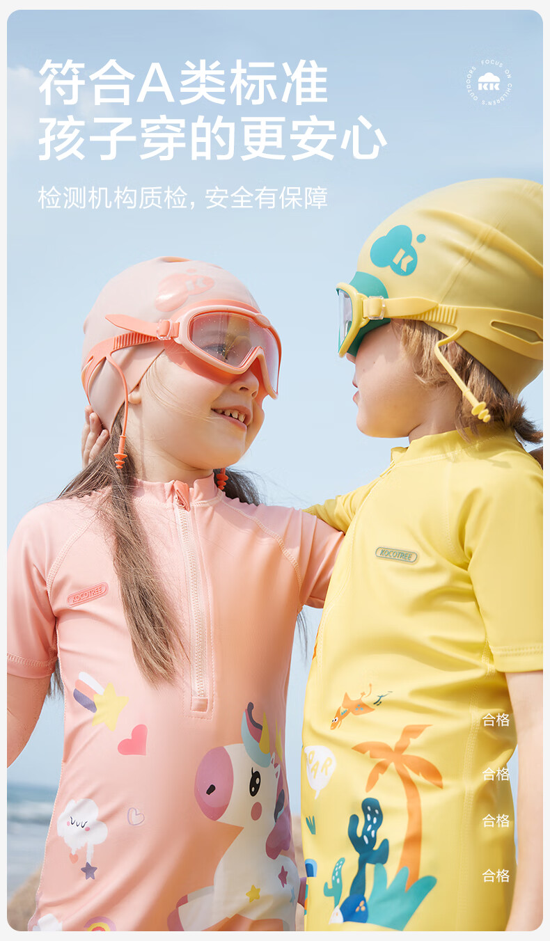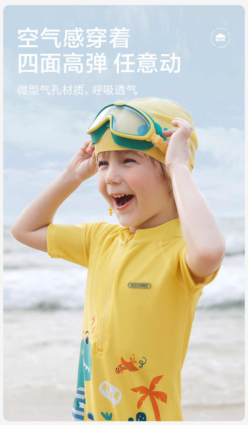 KocotreeK tree children's swimsuit new sun protection one-piece baby swimsuit for boys and girls, small shark blue one-piece, comes with swimming cap, storage bag, 120 cm recommended height 110-120, weight 30