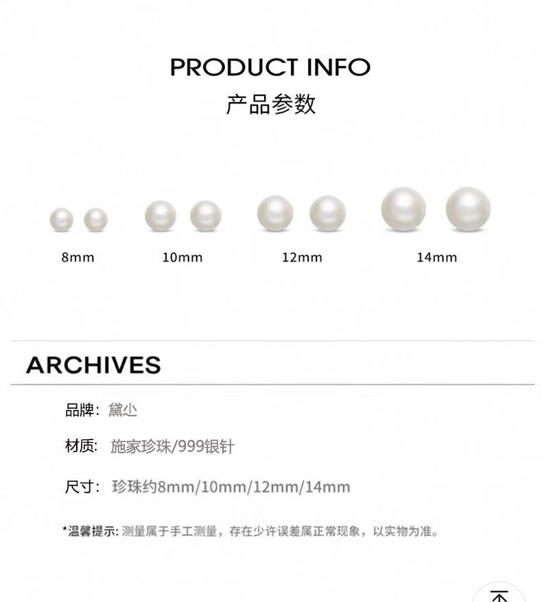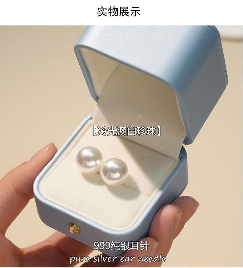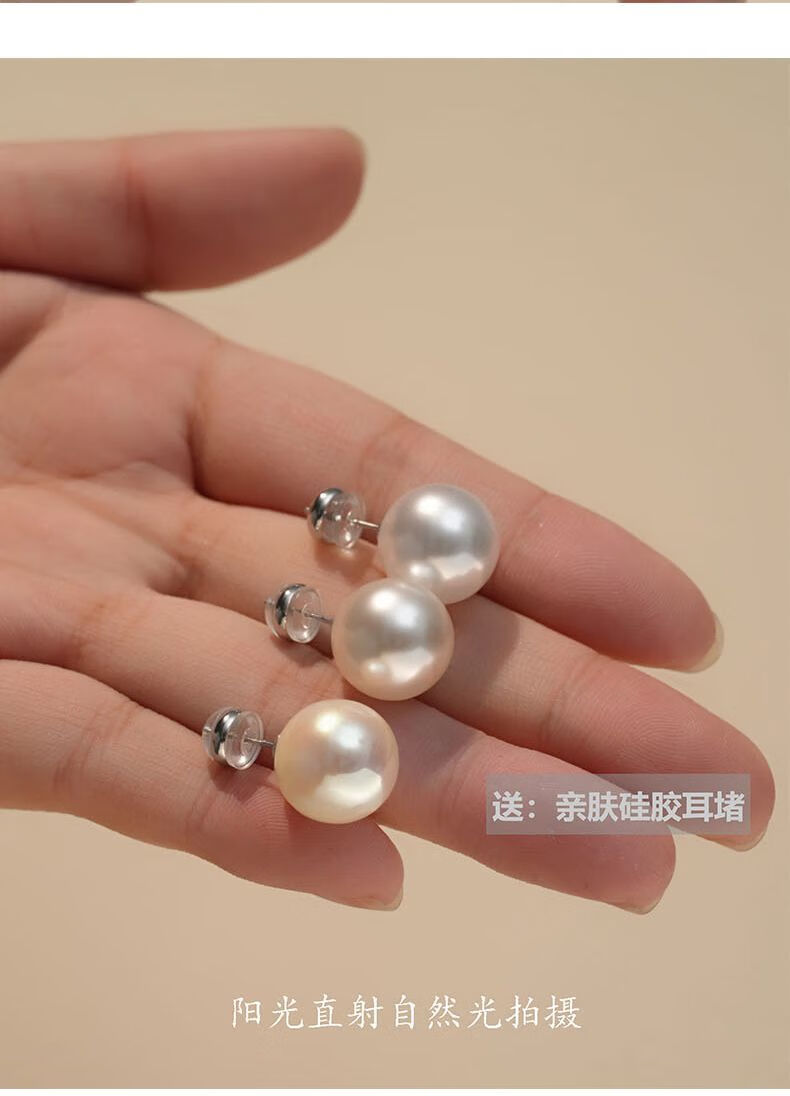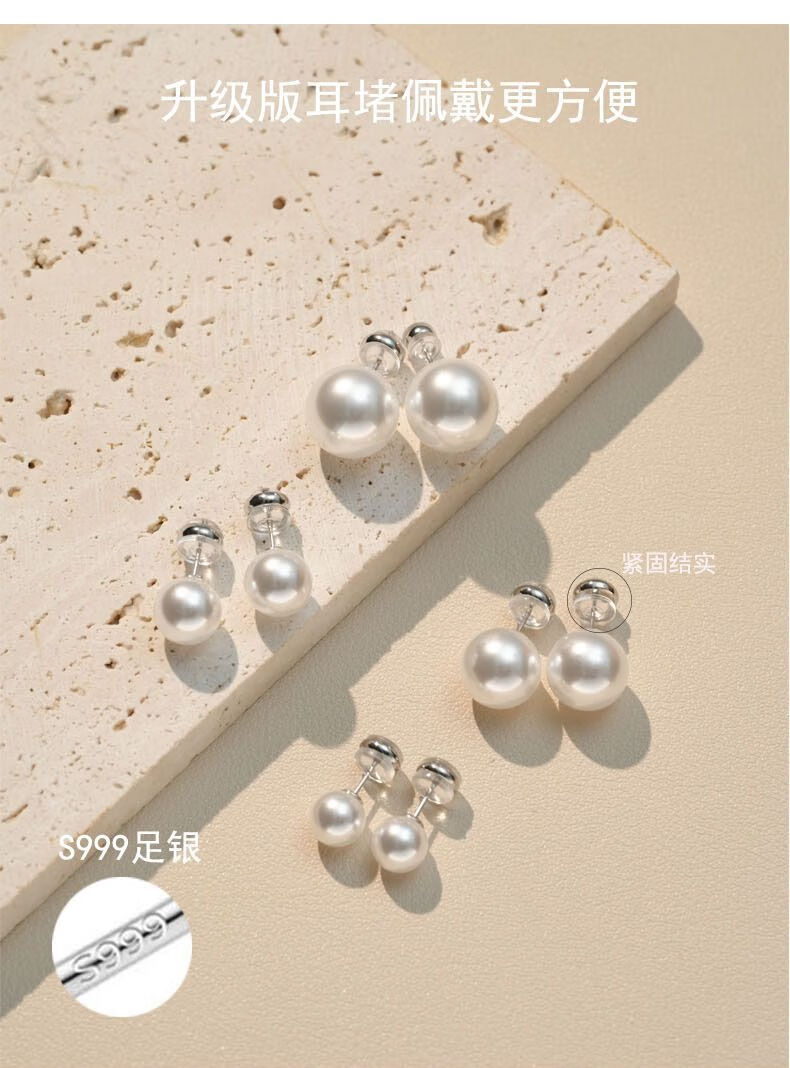 Fever same style pearl earrings 999 sterling silver Shijia earrings 2025 new hot style high-end light luxury round earrings satin cold white light + 999 pure silver 10mm pair one pair