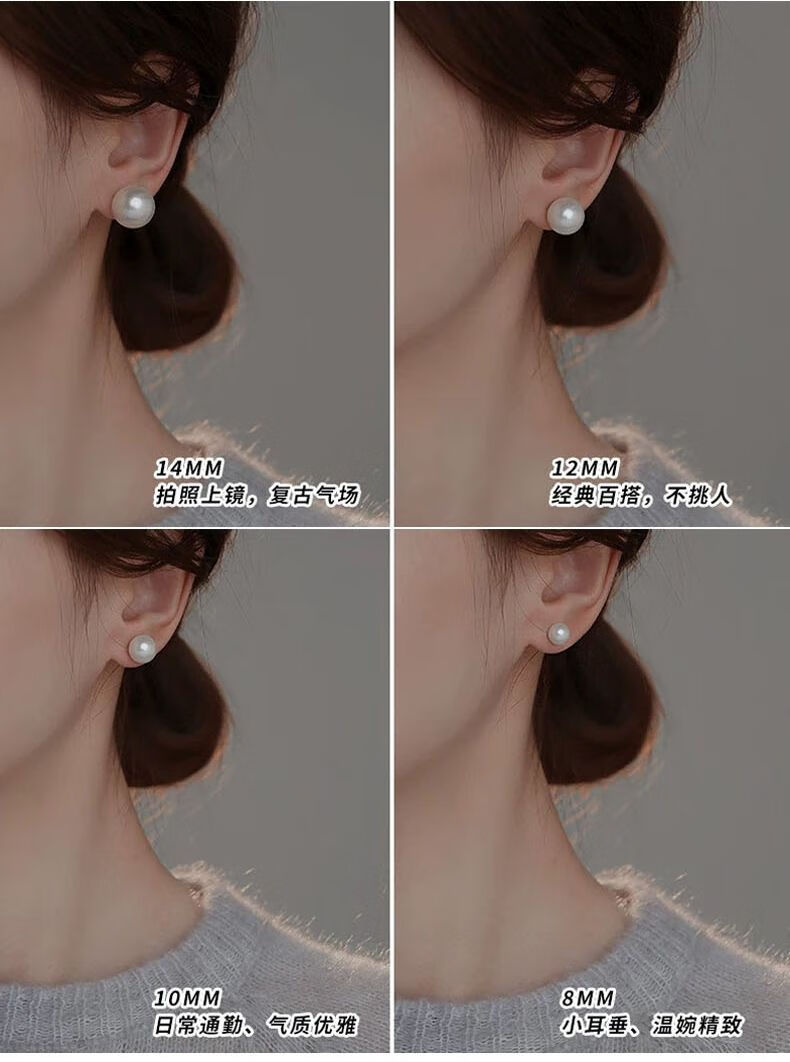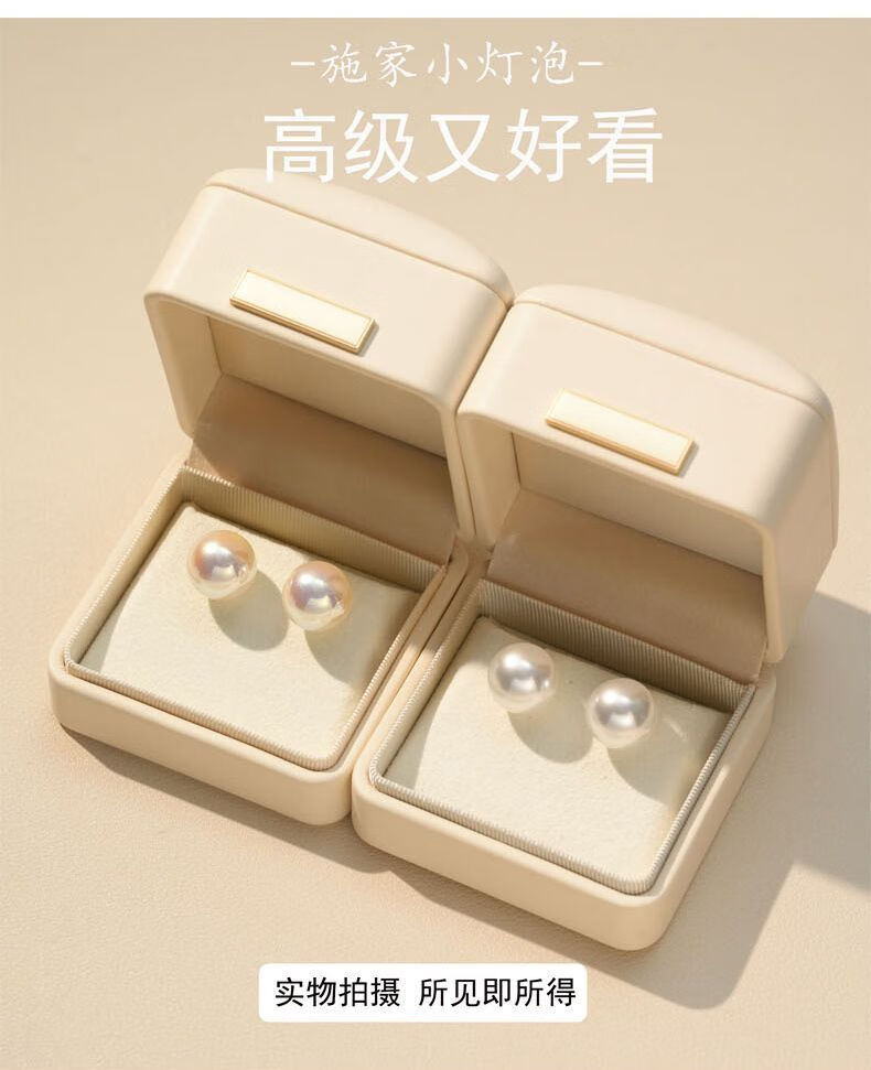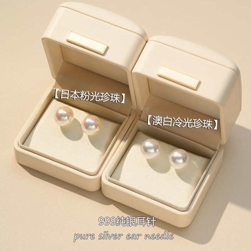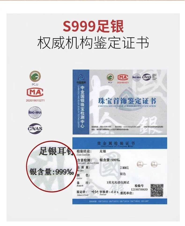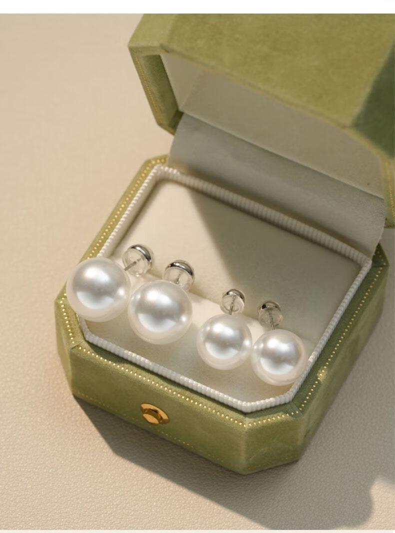 Fever same style pearl earrings 999 sterling silver Shijia earrings 2025 new hot style high-end light luxury round earrings satin cold white light + 999 pure silver 10mm pair one pair