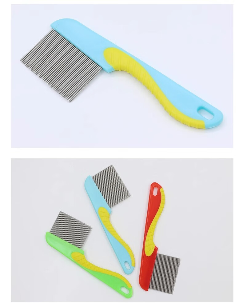 Universal flea comb for dogs and cats, stainless steel comb to remove eggs, pet grate comb to remove lice, comb to open knots, beauty seahorse comb, pet lice comb - blue - 1 piece 15.4*5.5cm