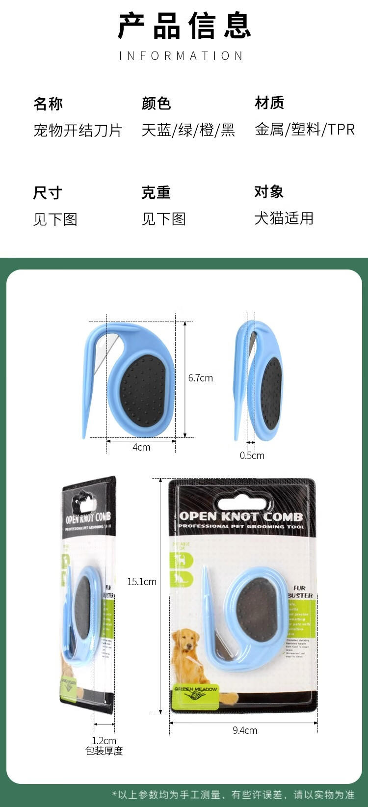 Pet Supplies Pet Comb Dog Knot Detangling Comb Knife Pet Knot Detangling Blade Comb Pet Detangling Comb - Green - 1 Pack