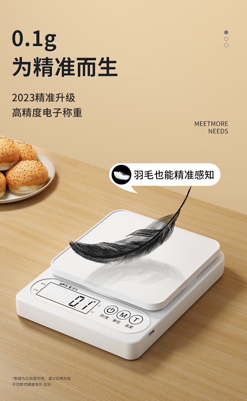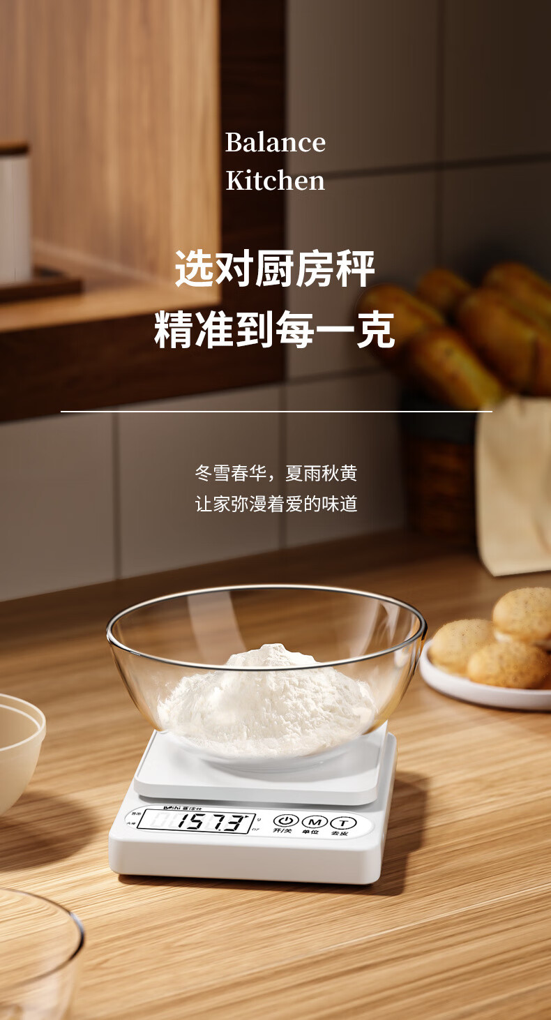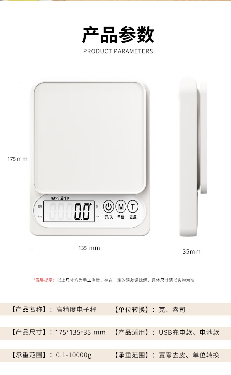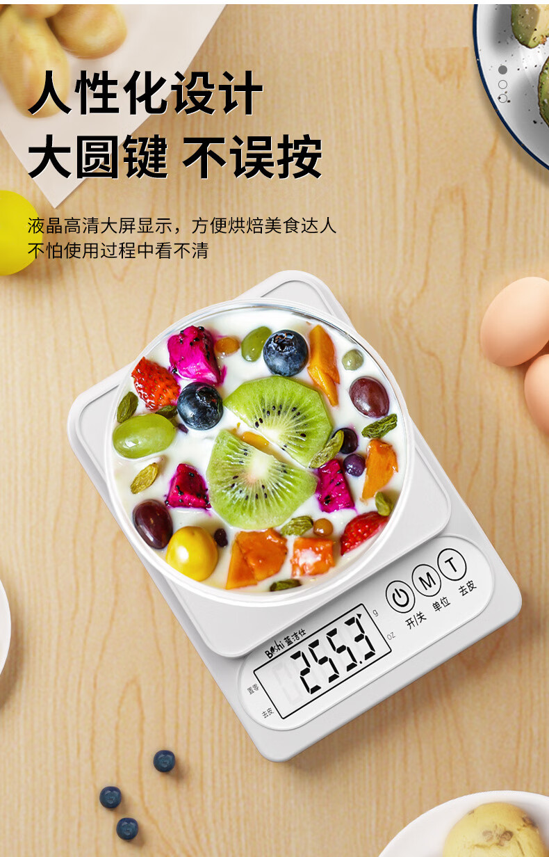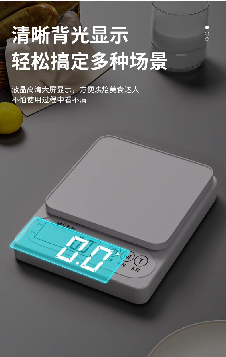 Pengjing small electronic scale Kesheng electronic scale high-precision kitchen scale baking precision household traditional Chinese medicine food scale multi-purpose pearl white battery model battery + tray + measuring cup + separator