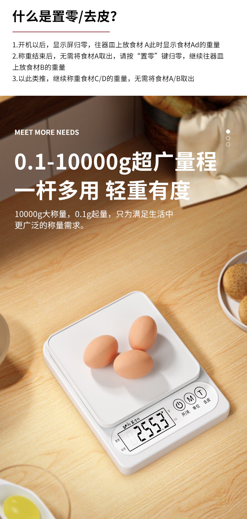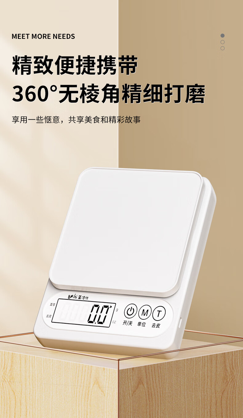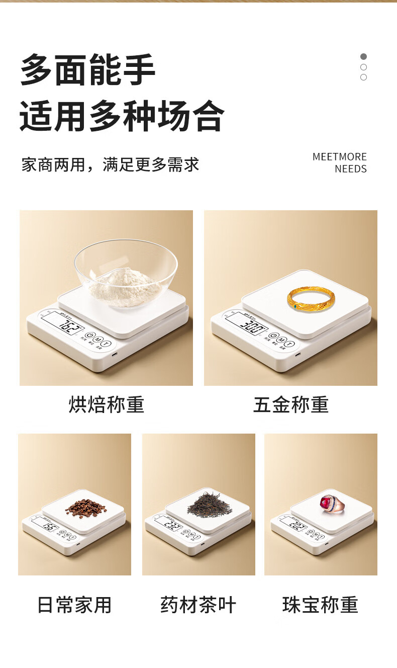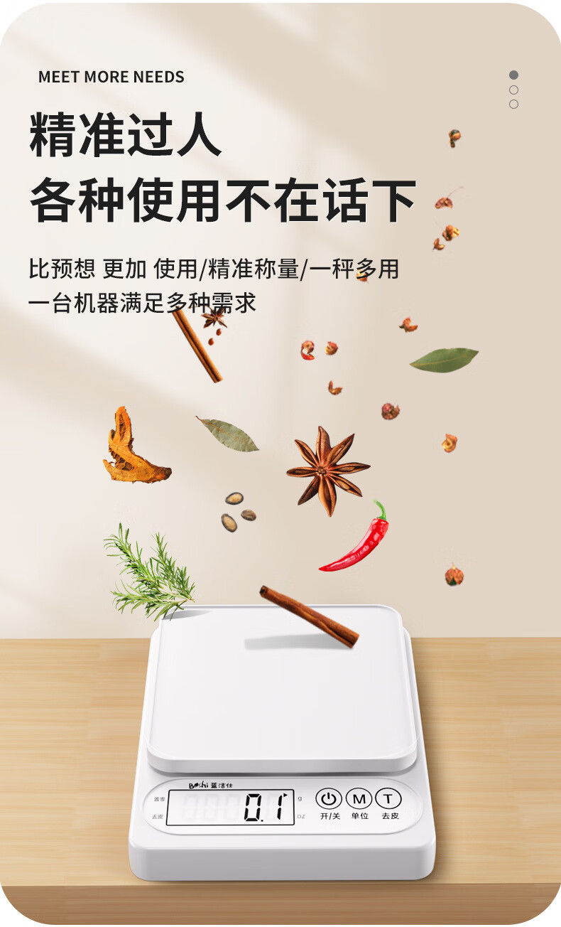 Pengjing small electronic scale Kesheng electronic scale high-precision kitchen scale baking precision household traditional Chinese medicine food scale multi-purpose pearl white battery model battery + tray + measuring cup + separator