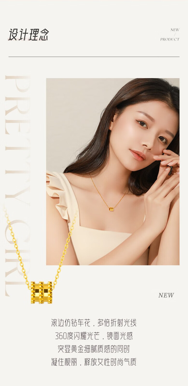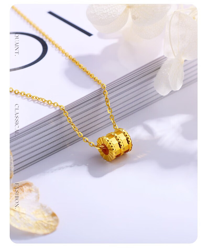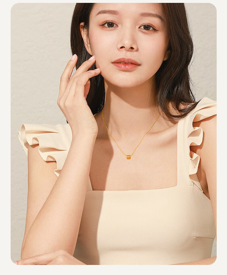 CHINA GOLD Gold Necklace Women's Pure Gold Small Waist Necklace Clavicle Chain Wedding Mid-Autumn Festival Birthday Gift for Girlfriend and Wife Pure Gold Pendant + Yellow K Gold Necklace Jingsuda