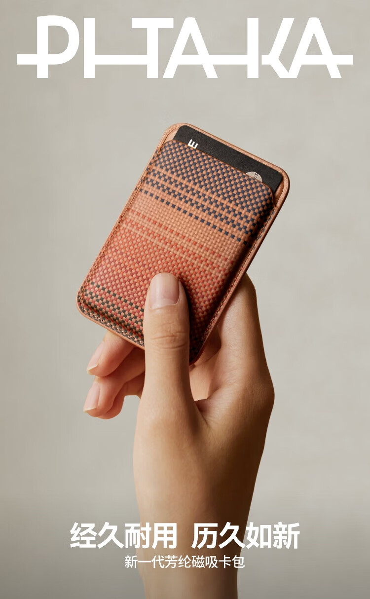PITAKA is suitable for magnetic suction mobile phones, Apple iPhone 16/15 series MagSafe mobile phones, aramid fiber magnetic suction card holders, bank card ID holders, portable and lightweight dual-card card holders, black and gray