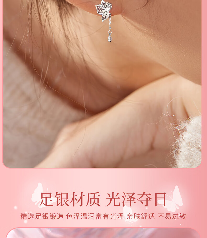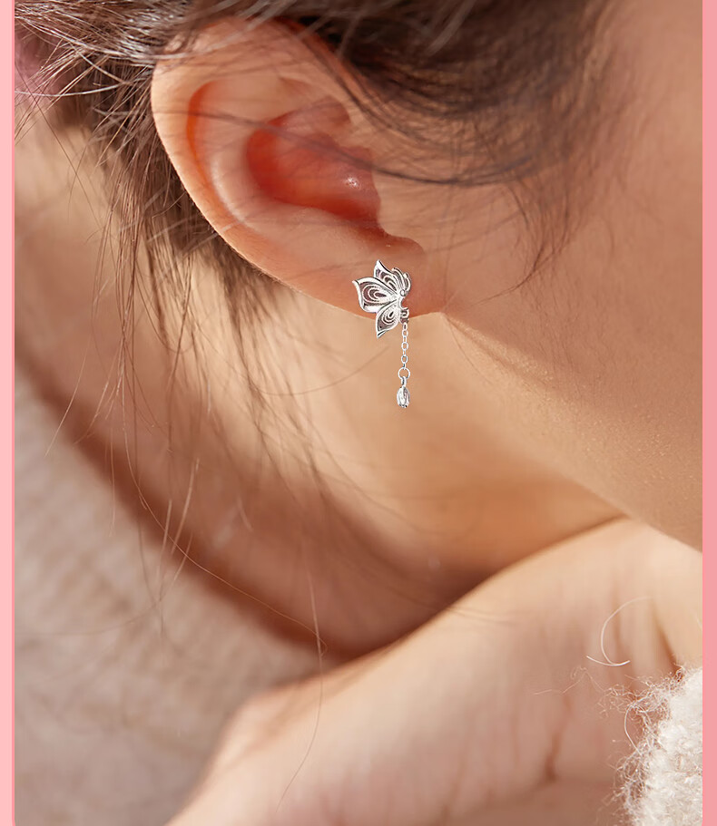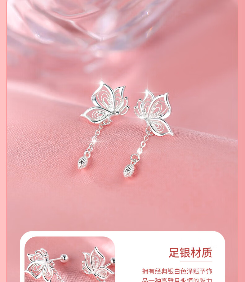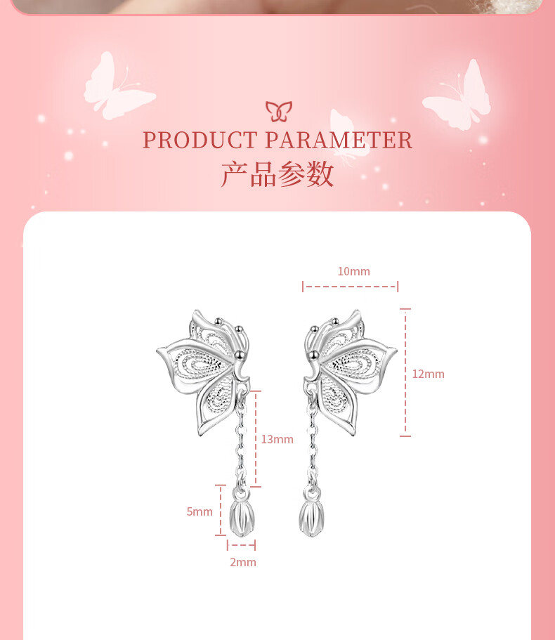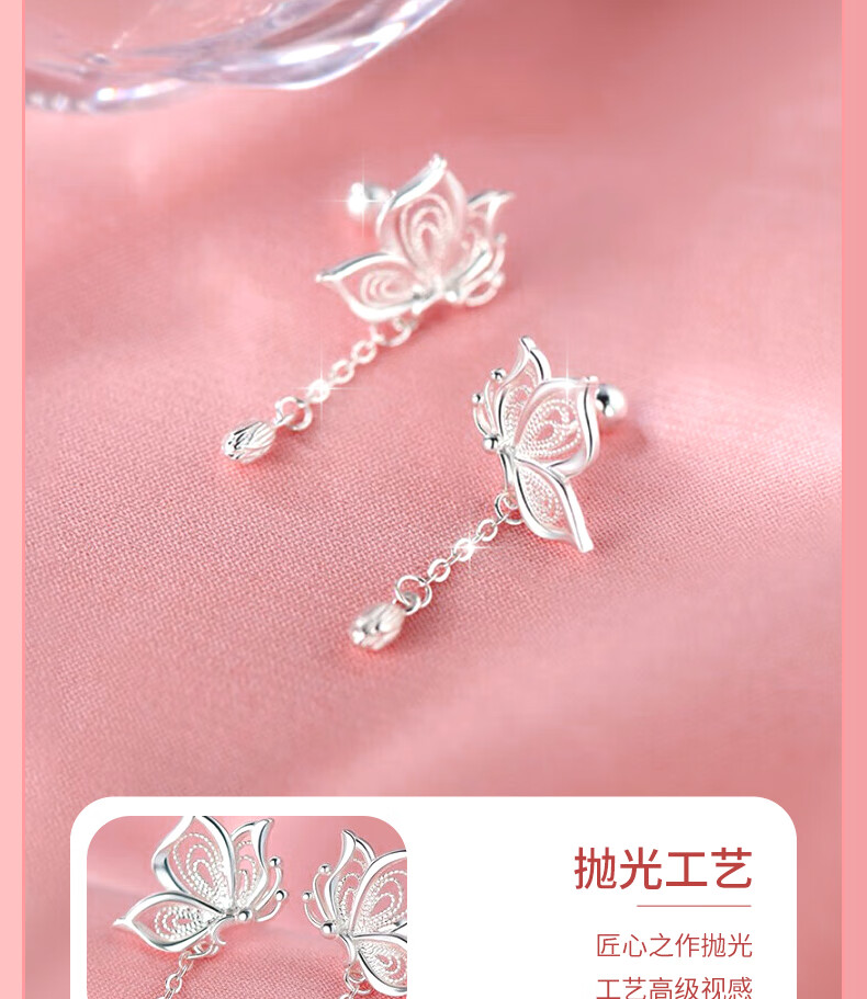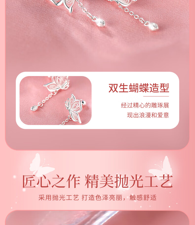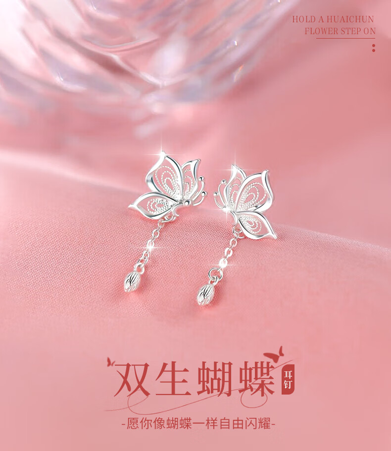China Gold Hollow Twin Butterfly Tassel Earrings for Women Earrings and Earrings Birthday Gifts for Girlfriend and Wife Wedding Anniversary Silver Hollow Twin Butterfly Tassel Earrings Today/Next Day Delivery