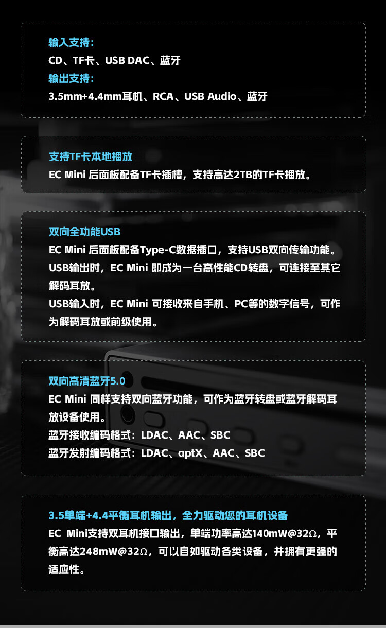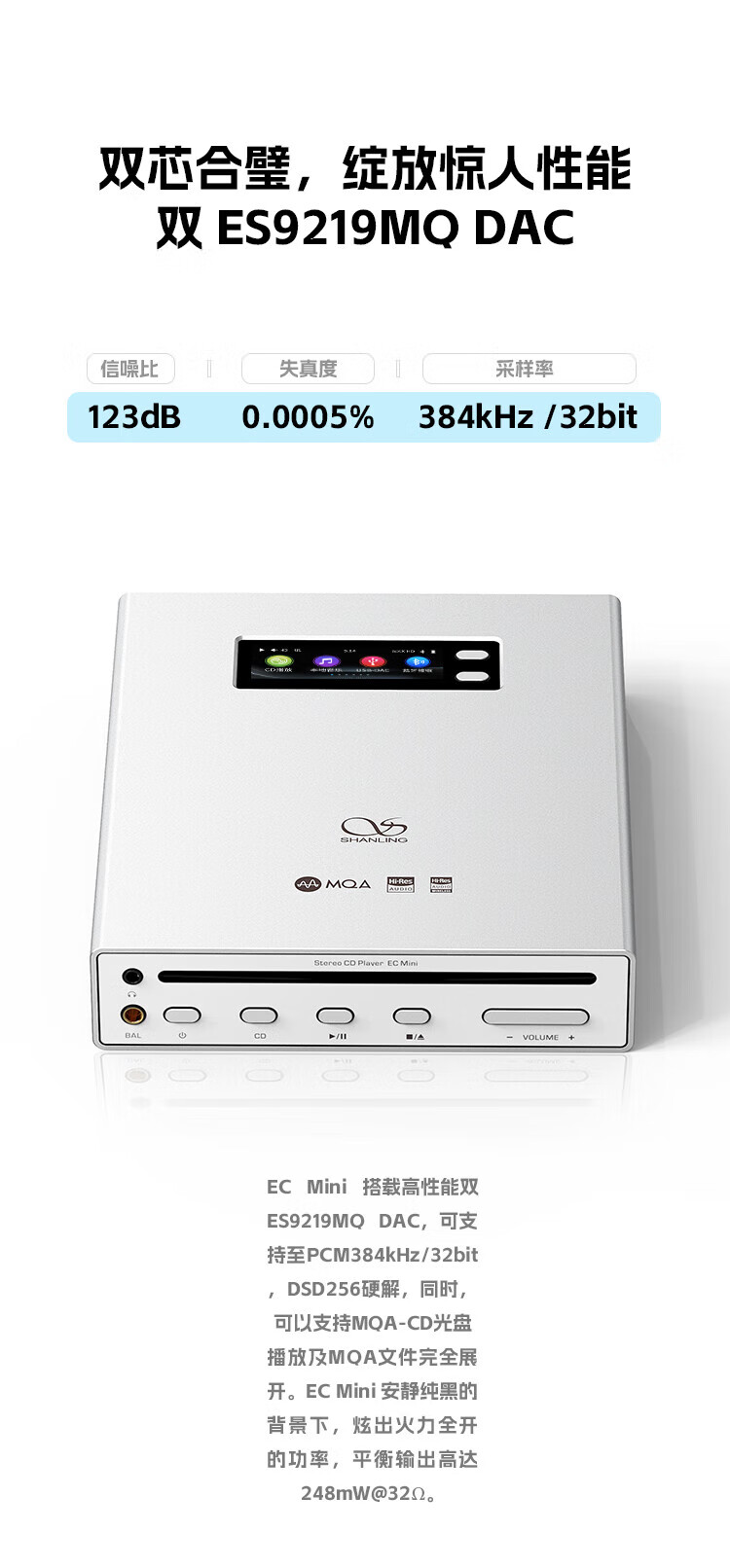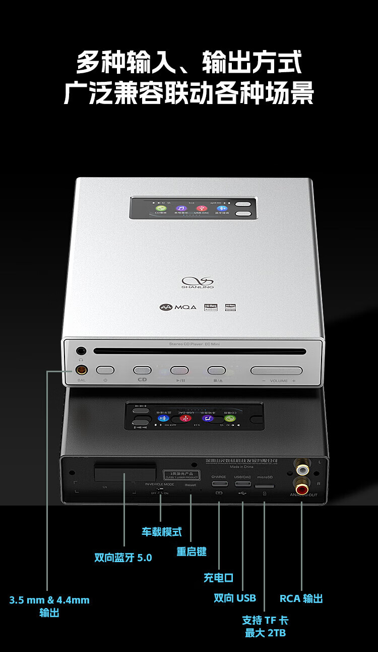 SHANLING EC Mini portable CD player all-in-one HD format car CD player two-way Bluetooth 5.0 ECmini CD all-in-one machine Xingchen Gold