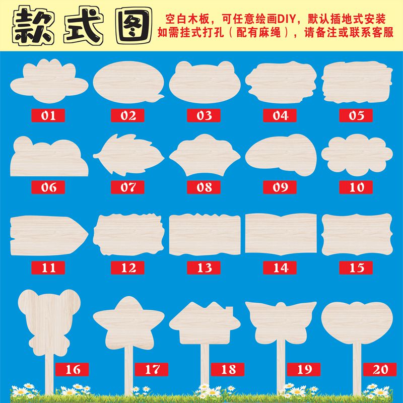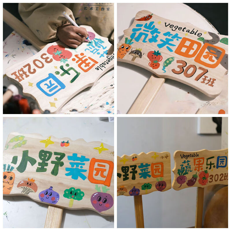 Diy hand-painted wooden blank class sign kindergarten planting area vegetable garden vegetable patch garden plant label insert 01 style_32*19cm_pole 65cm_waterproof and anti-corrosion place