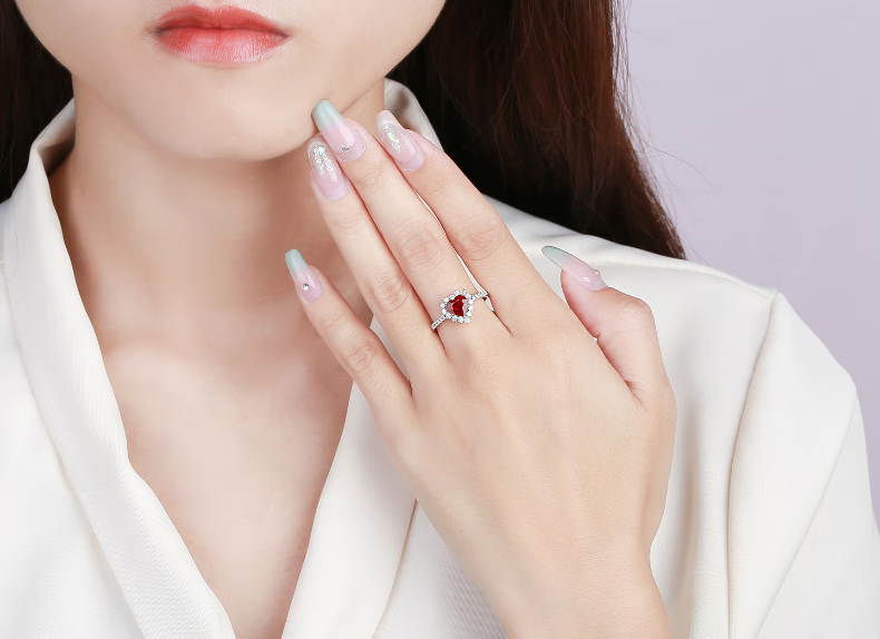 HEEKAIYI Pigeon Blood Ruby Ring Women's Diamond Ring Luxury Jewelry Chinese Valentine's Day Birthday Gift for Wife and Girlfriend