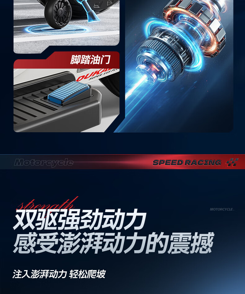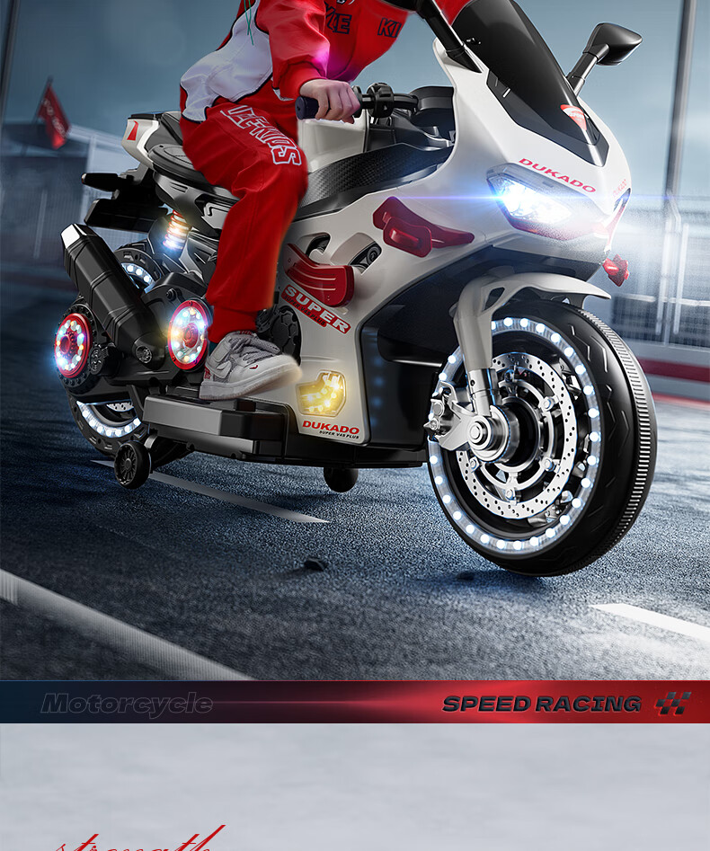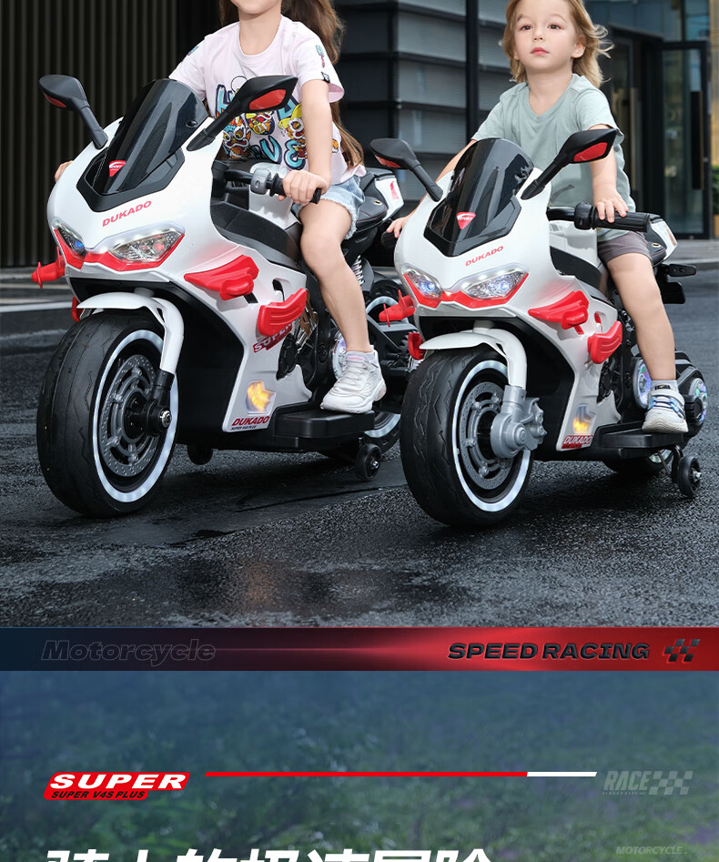 Bedron Ducati children's electric motorcycle two-wheeled rechargeable toy motorcycle for boys and girls, large red + disc brake + 24V battery + high-speed motor