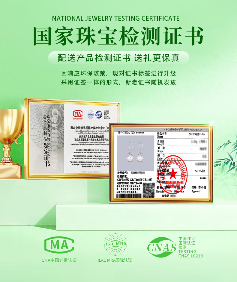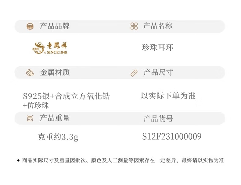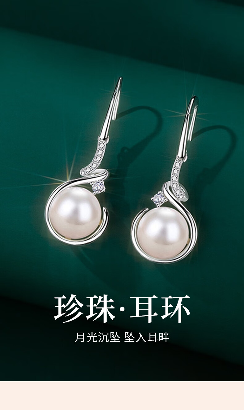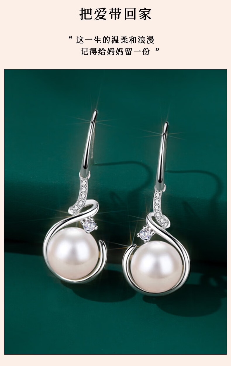 Lao Fengxiang S925 Silver Pearl Earrings Women's Earrings Studs and Earrings Birthday Chinese Valentine's Day Anniversary Gift for Girlfriend and Wife Classic Brand Gift Box *Each warehouse shipped/fast delivery