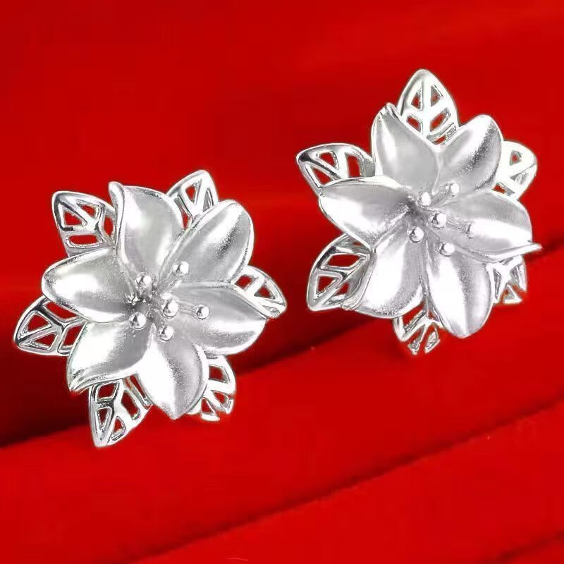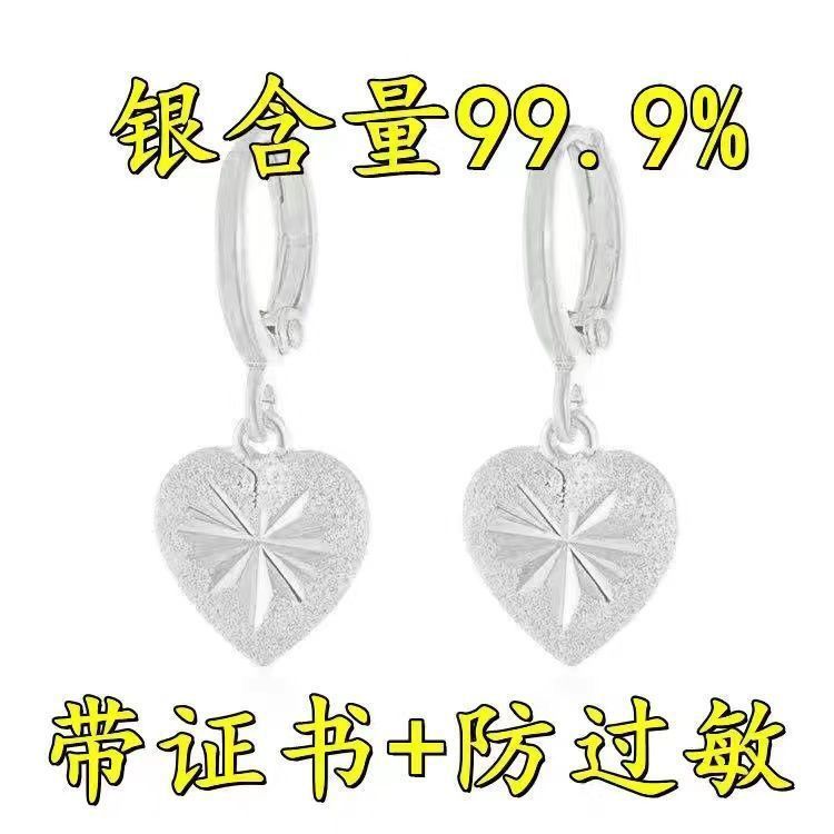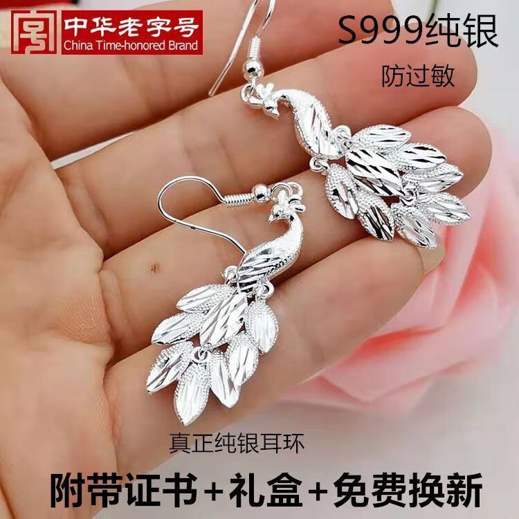 DL 1998 Fat Donglai same style 9999 sterling silver earrings Hong Kong 9999 thousand silver earrings women's fashion starry maple leaf long style 9999 real silver. Lucky earrings 8.15 grams