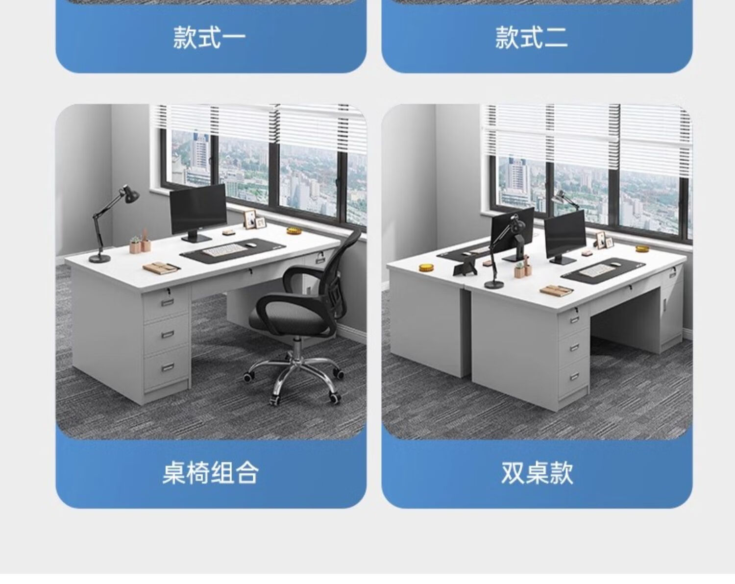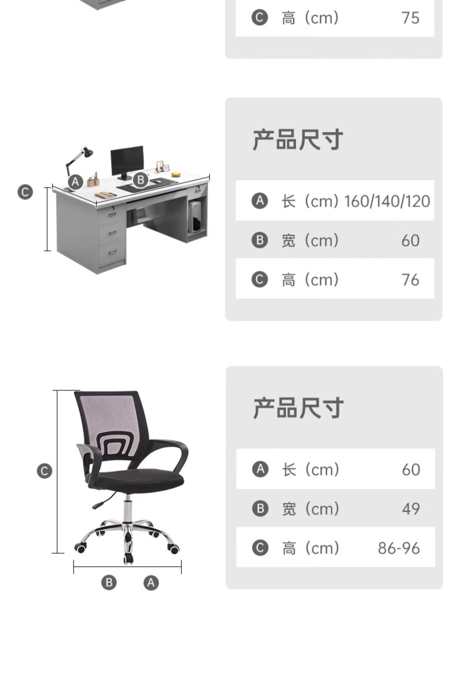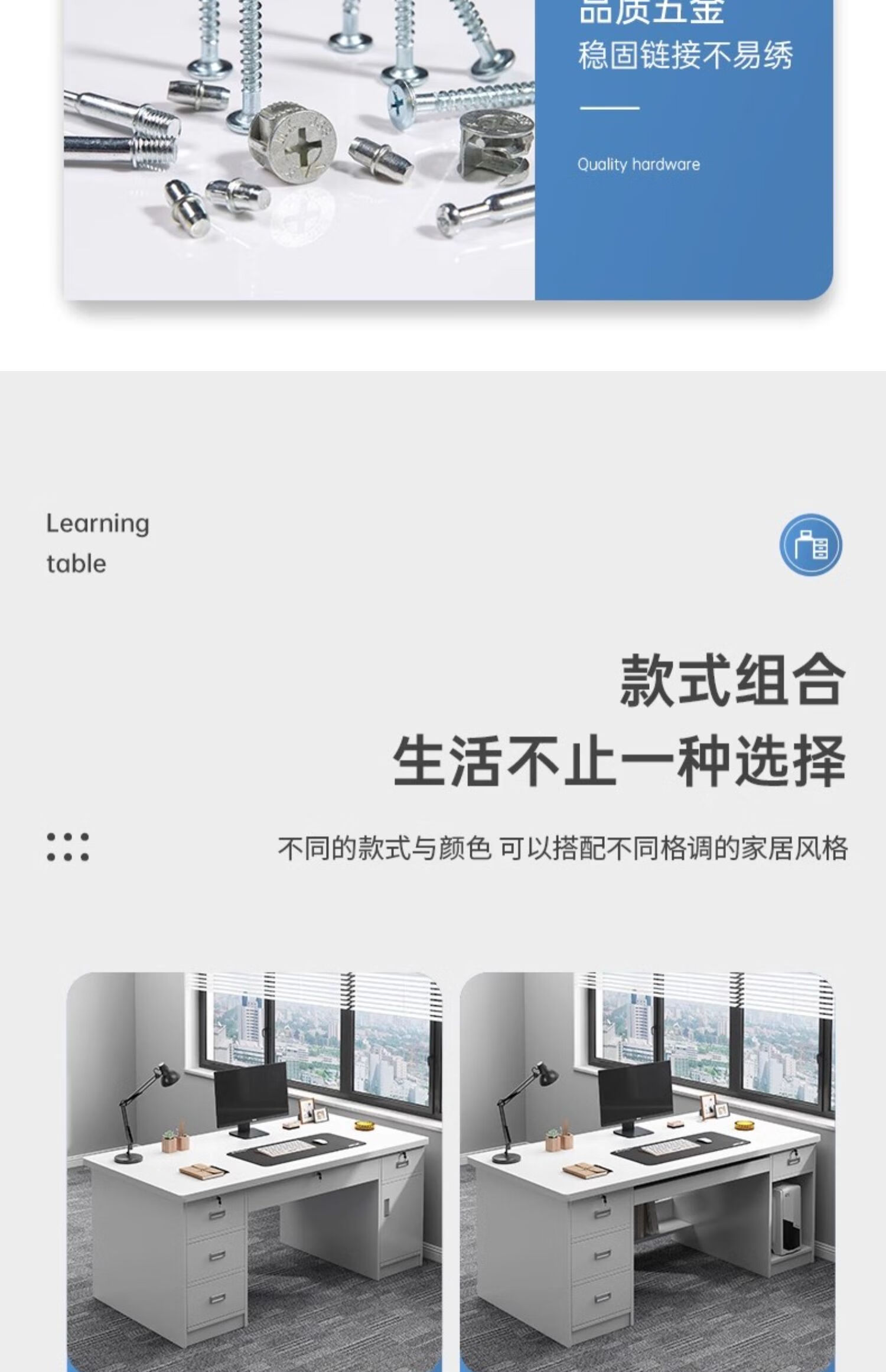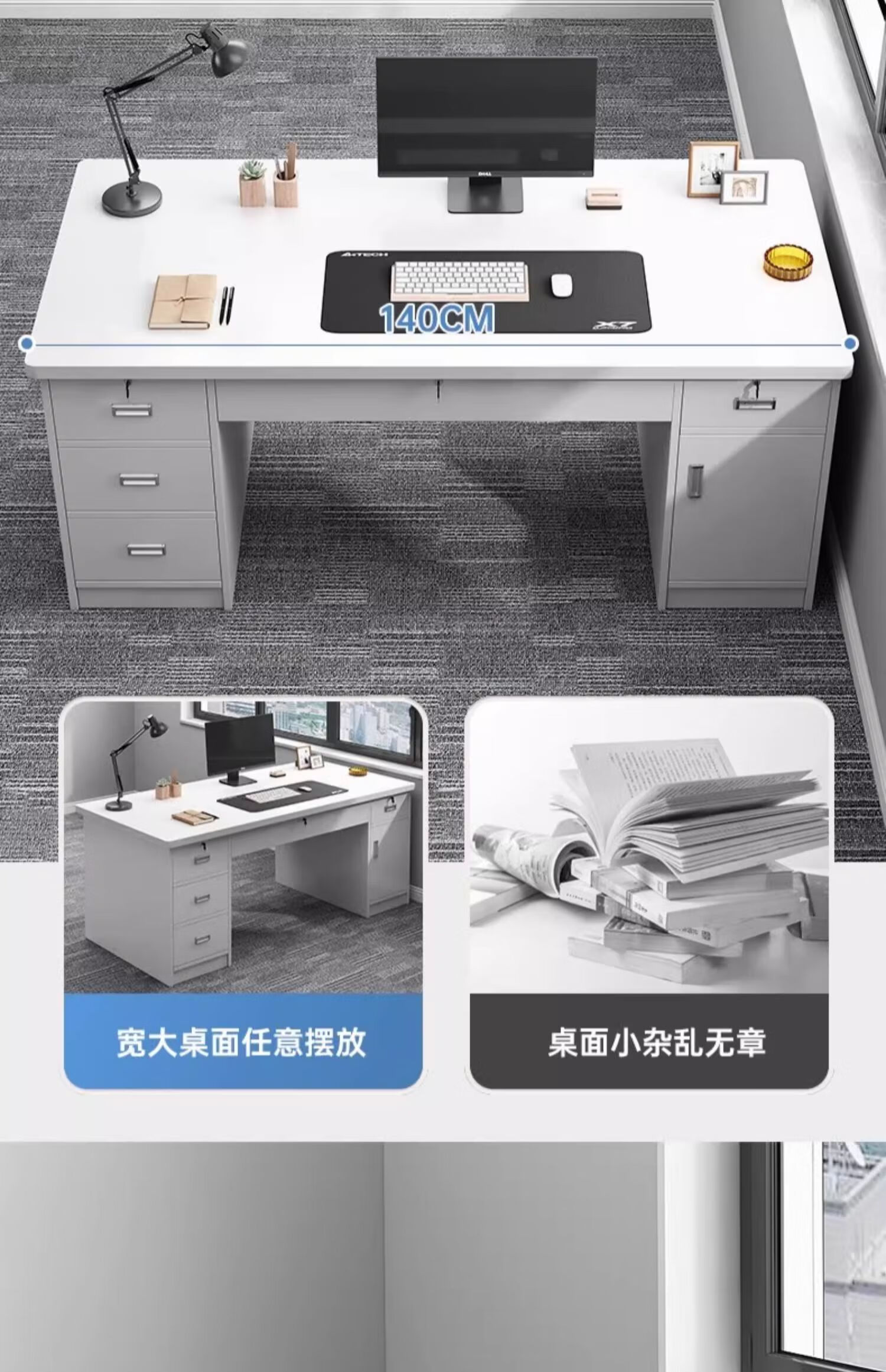Computer desk with drawers, office desk and chair combination for staff, simple modern home workbench, five drawers and one cabinet_High-grade gray 1.4m_Assembled