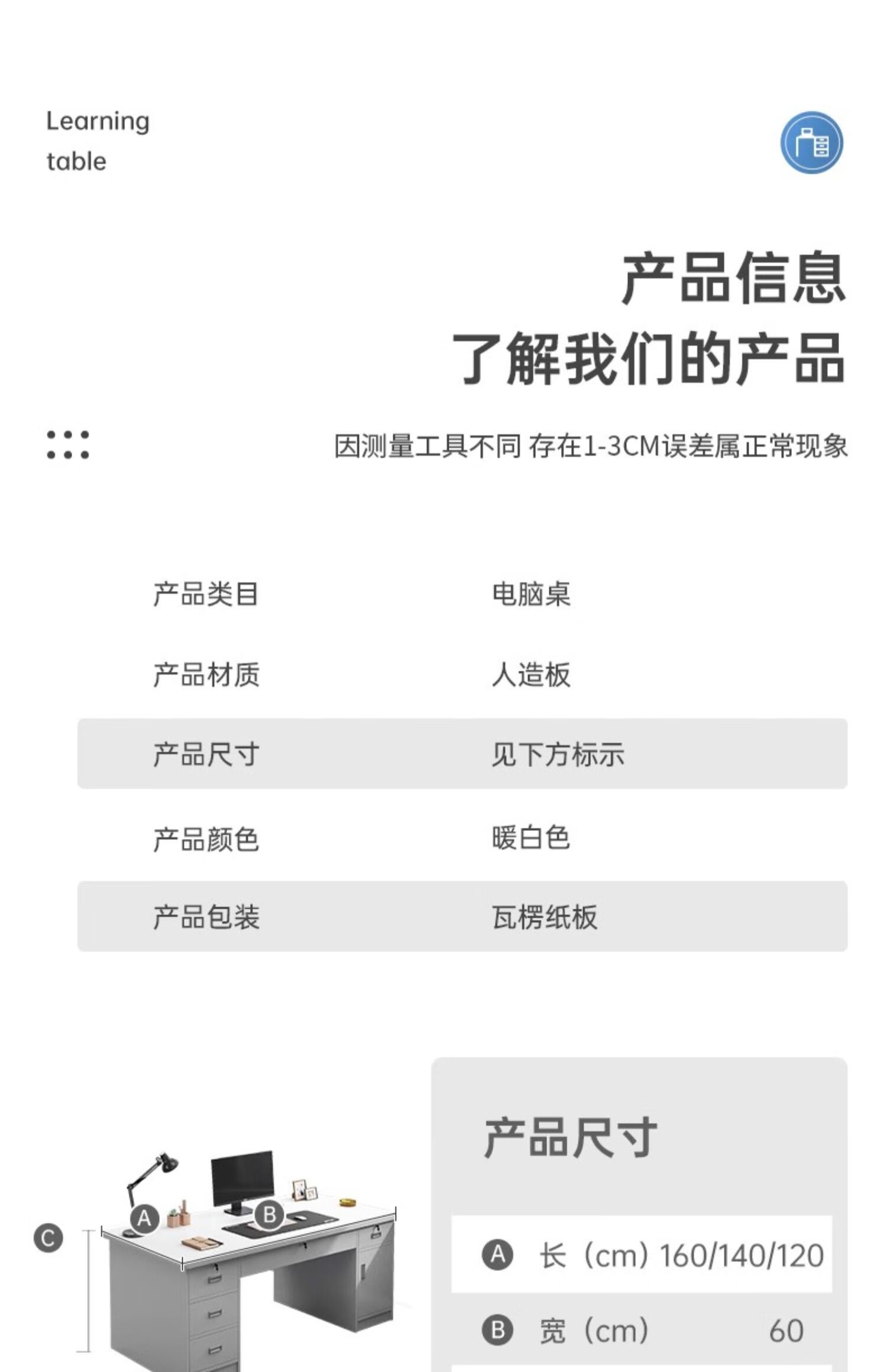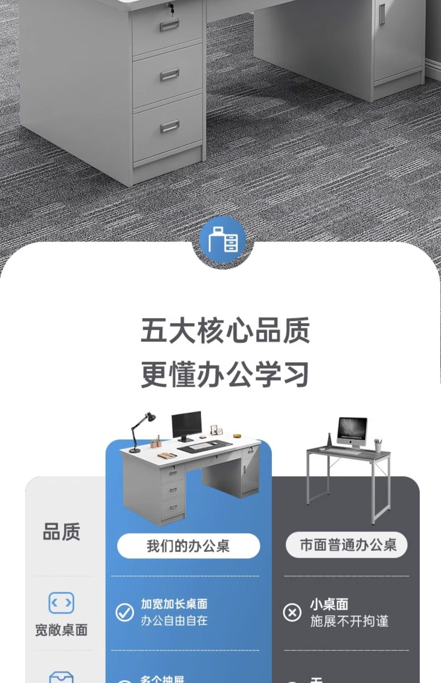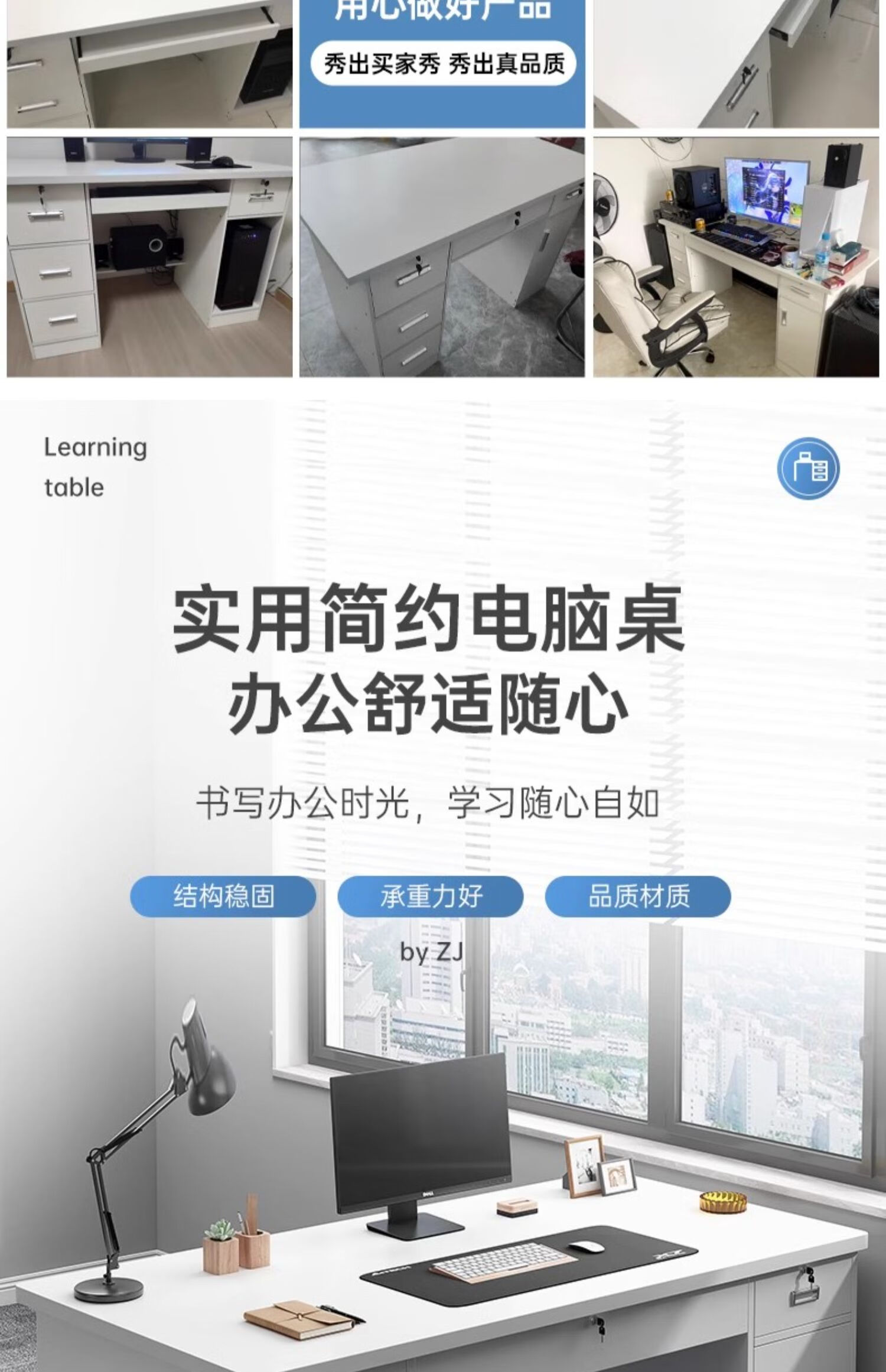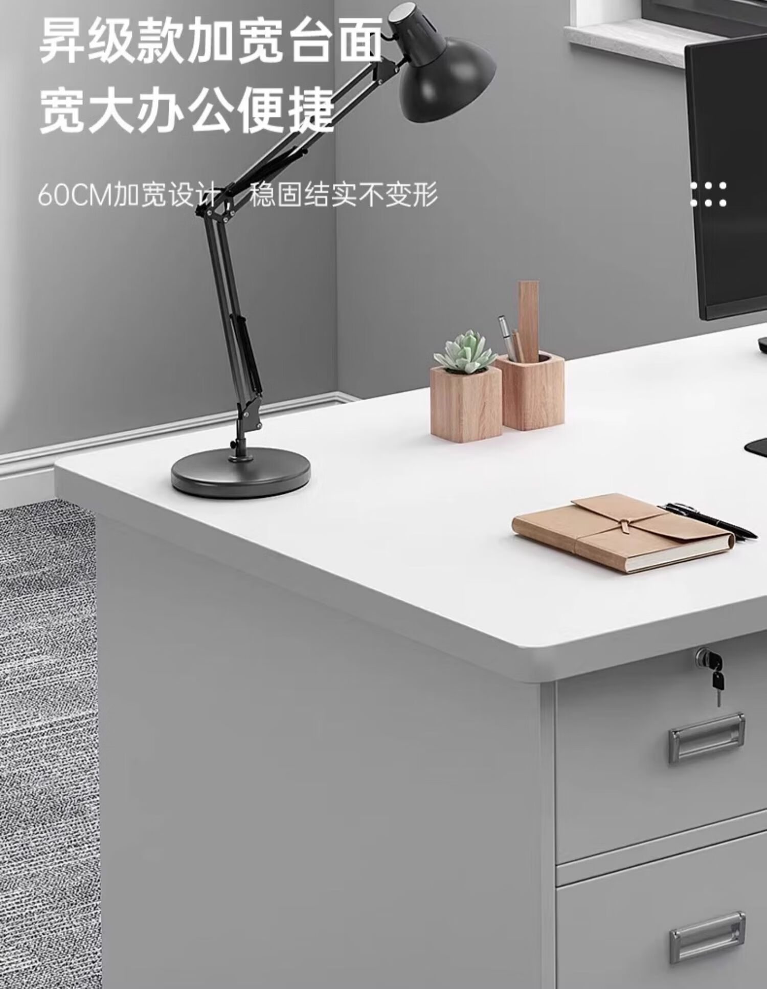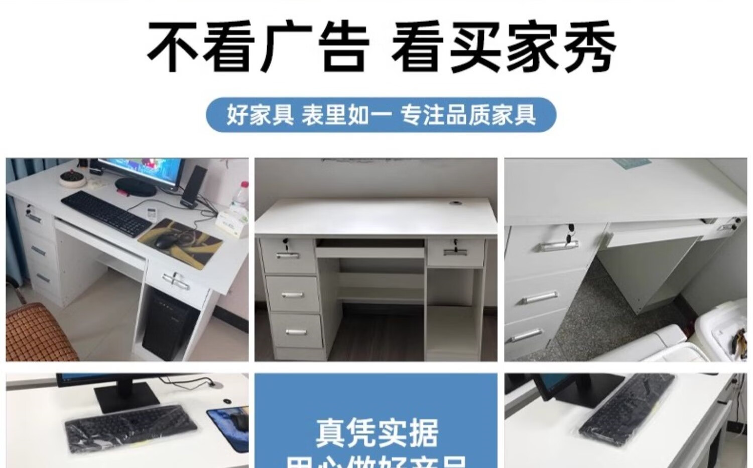 Computer desk with drawers, office desk and chair combination for staff, simple modern home workbench, five drawers and one cabinet_High-grade gray 1.4m_Assembled