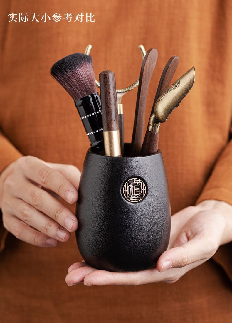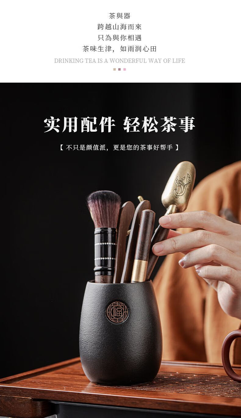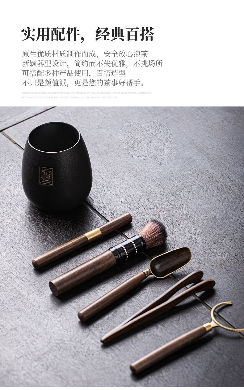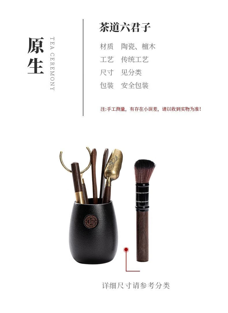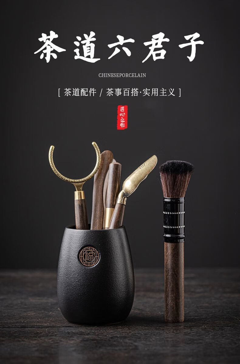 Meikejie Tea Ceremony Six Gentlemen Set Kung Fu Tea Set Accessories Complete Tea Table Tea Table Tea Making Tools Tea Knife Tea Clamp Brush Supplies Black Bucket-Fu Dao + Sharp Knife Set 6 Pieces
