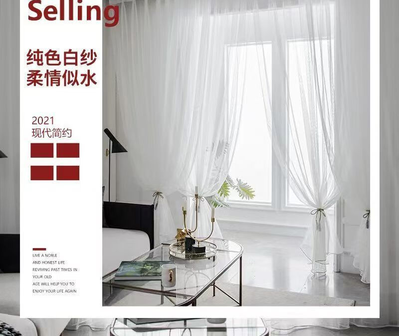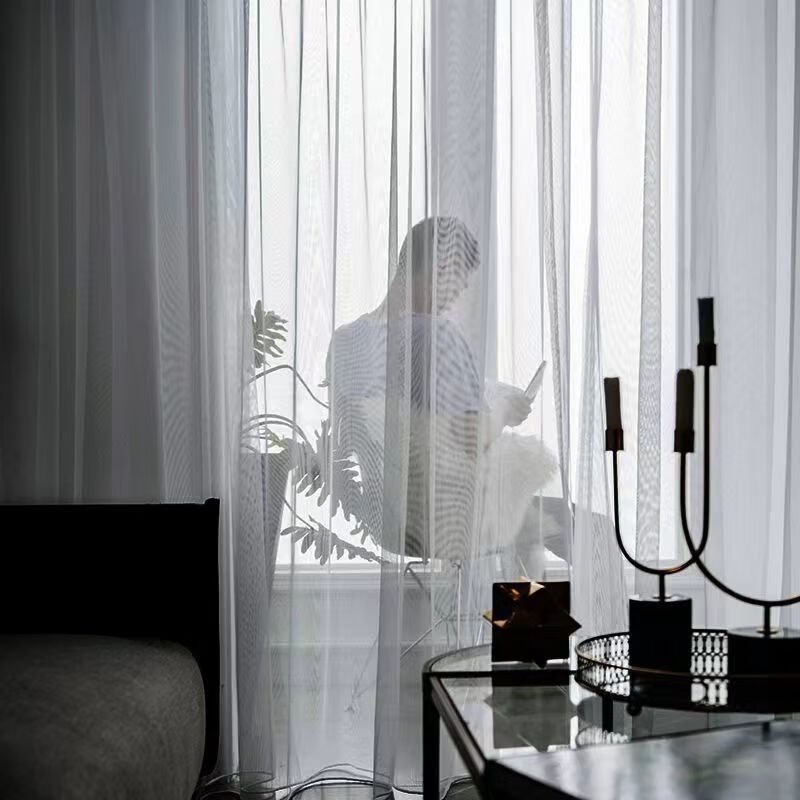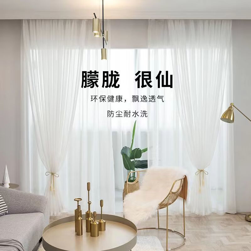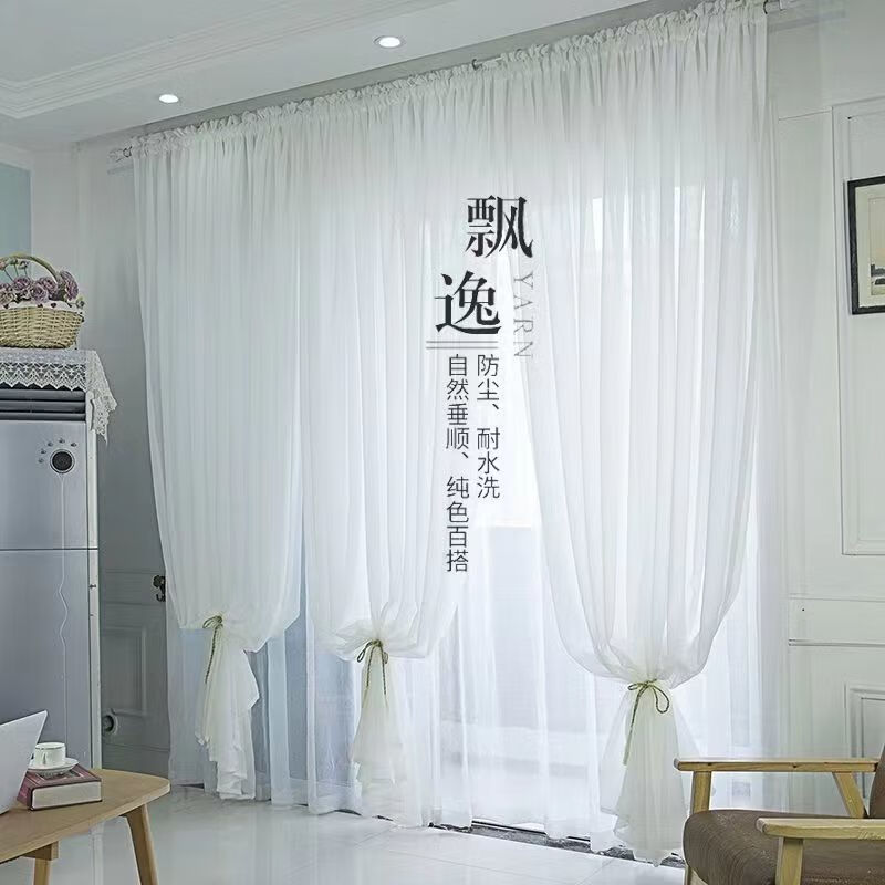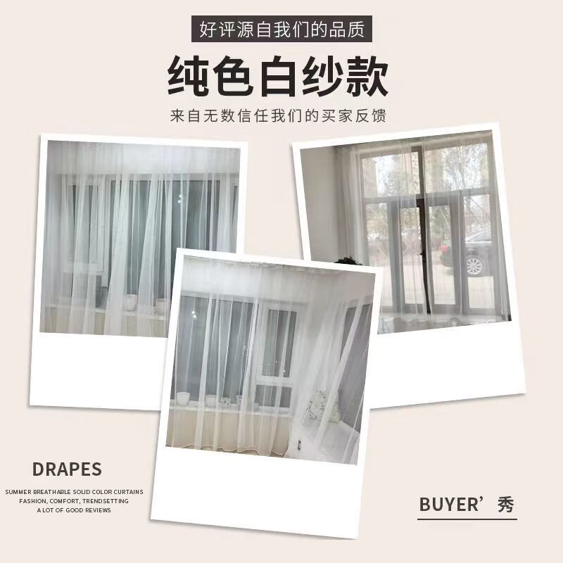 Window screen finished white gauze bay window bedroom living room light-transmitting simple curtain gauze curtain gauze curtain ultra-light moon shadow white hanging hook style (light-transmitting) width 2 height 2.1 (with accessories)