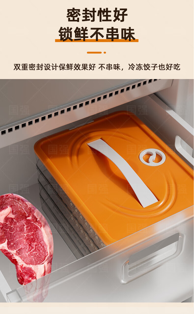 Meikejie dumpling box special frozen dumplings multi-layer refrigerator storage box household dumpling tray quick-frozen crisper freezer box supermarket quality PP material - timed freshness lock white four layers and one cover丨holds 258 dumplings丨portable meter
