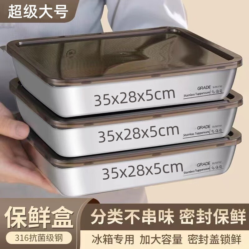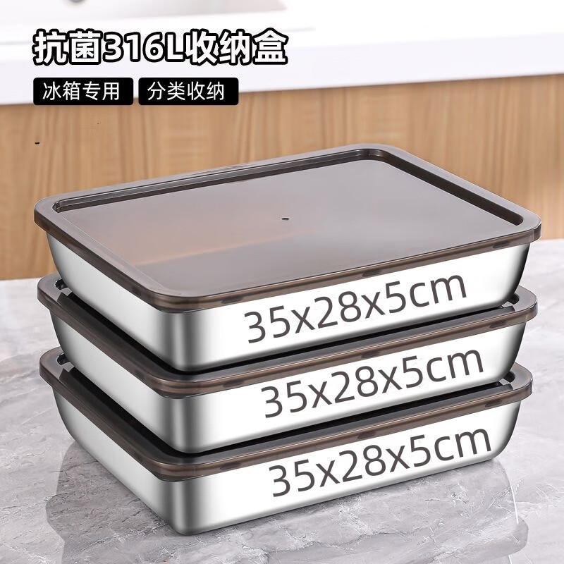 Meikejie 40x30CM 316 stainless steel dumpling box household dumplings and wontons frozen crisper refrigerator storage box with lid 3 flat bottoms + 3 transparent lids length 25 width 20 height 4 cm 316
