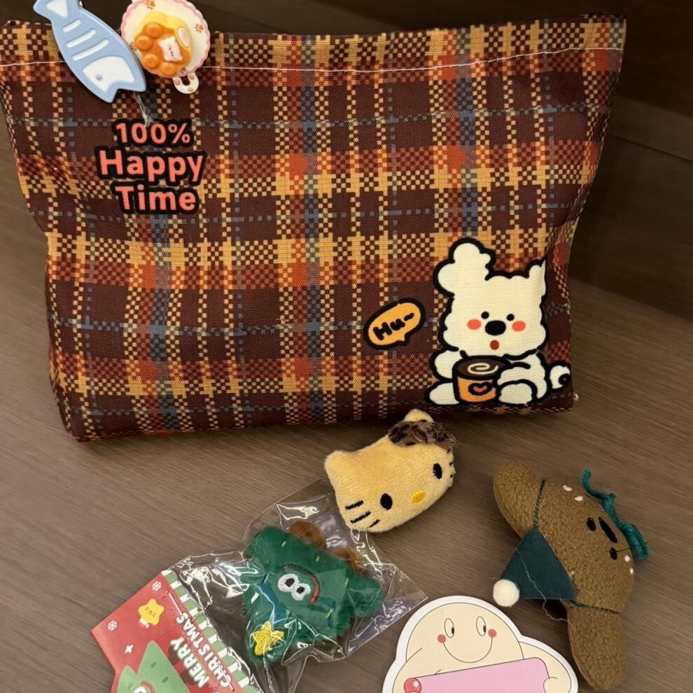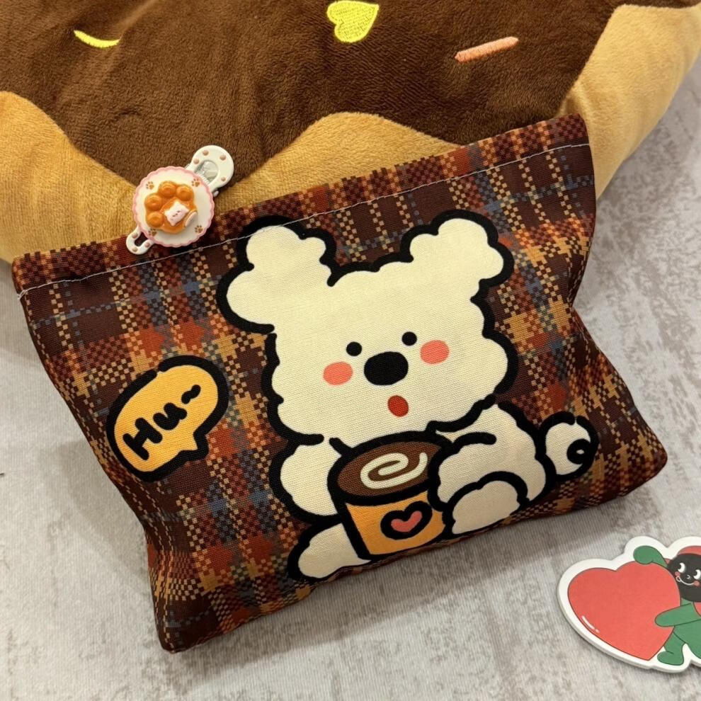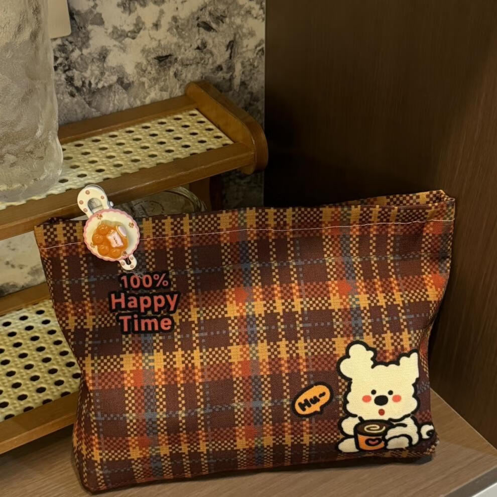 Cosmetic bag, portable large-capacity retro plaid storage bag, stylish travel and outing toiletry bag, coffee puppy storage bag