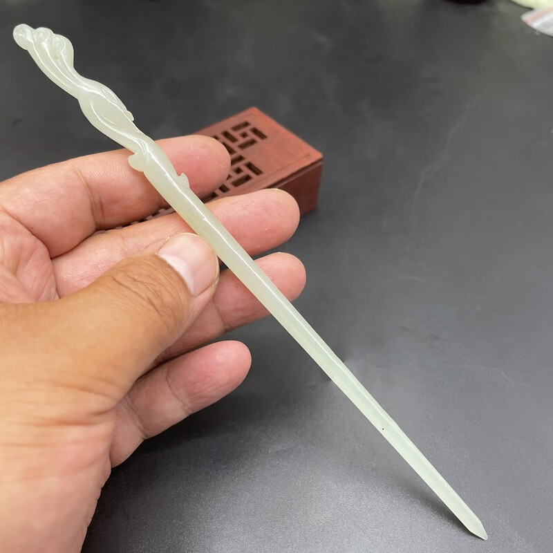 Miaojufu Phoenix Hairpin Headband Hair Accessory Hetian Jade Blue and White Jade Phoenix Head Jade Hairpin Ancient Style Hanfu Birthday and Valentine's Day Gift