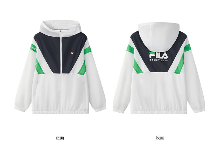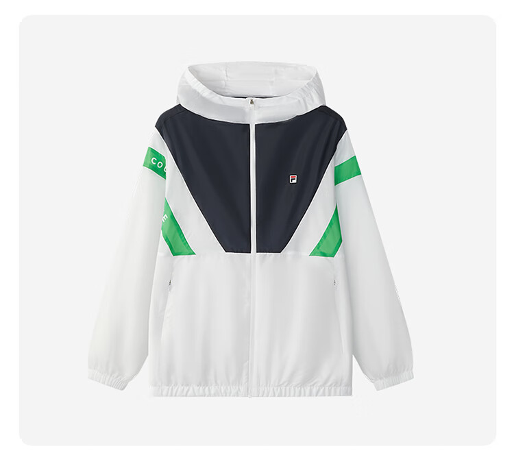 FILA Children's Sun Protection Clothing 2025 Autumn New Loose Woven Hooded Jacket for Boys, Middle and Large Children Jade White-WT 160