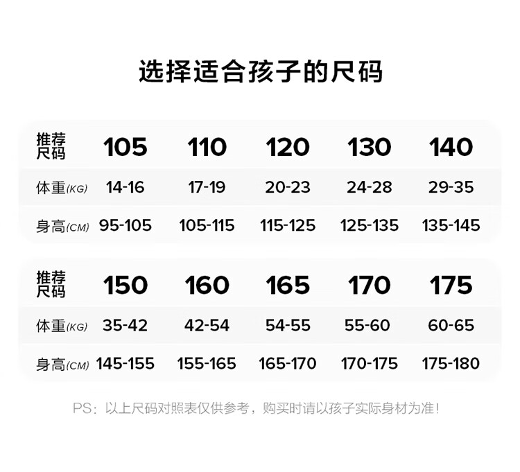 China (cm) 165 / 88-90 170 / 96-98 175 / 108-110 180 / 118-122 185 / 126-130