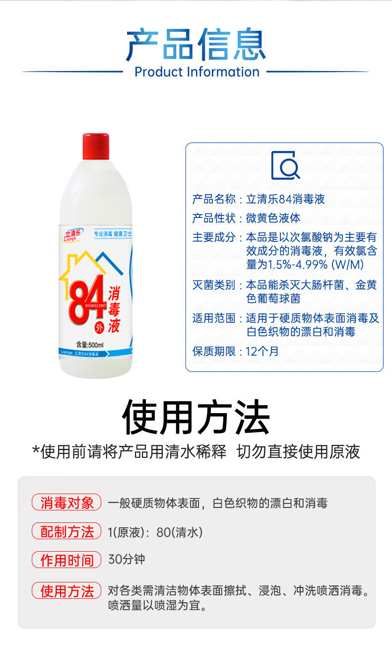 Liqingle 84 disinfectant household sterilization water hotel kindergarten clothing bleaching and stain removal toilet cleaning 2 bottles