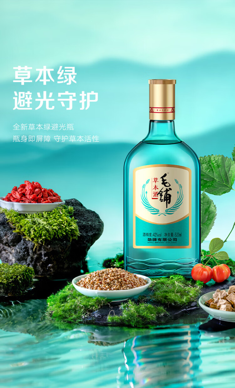 Maopu Herbal Liquor Tartary Buckwheat Liquor New Product Green Buckwheat Pure Grain Liquor Base Liquor Aged in Pottery Vats for More than 5 Years Green Bottle Liquor 42% 520mL 6 Bottles Maopu Herbal Liquor - Light Bottle Liquor Original Box