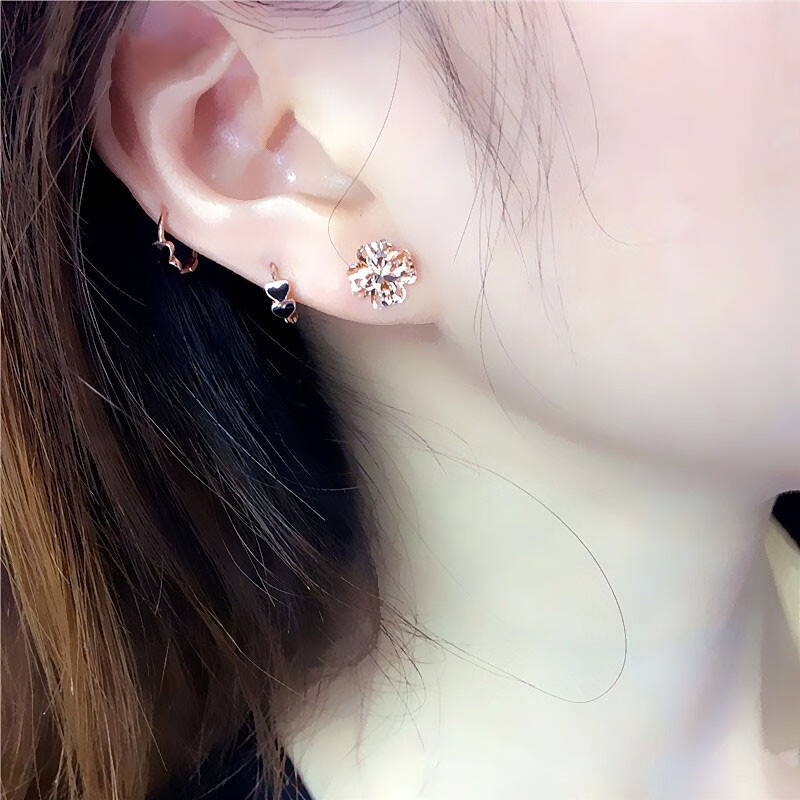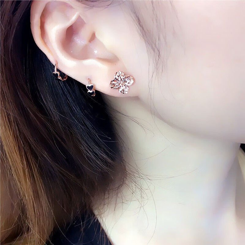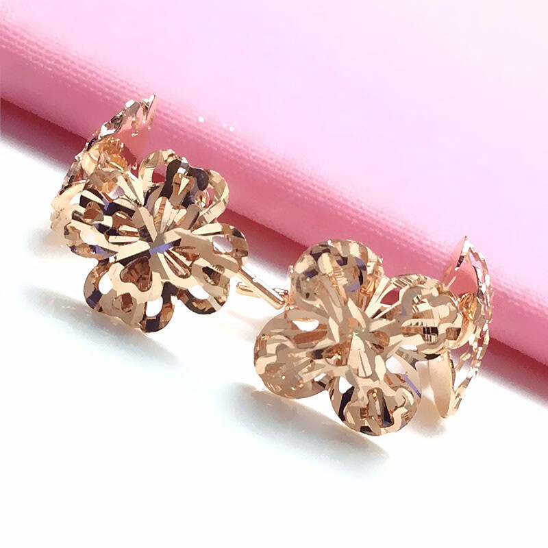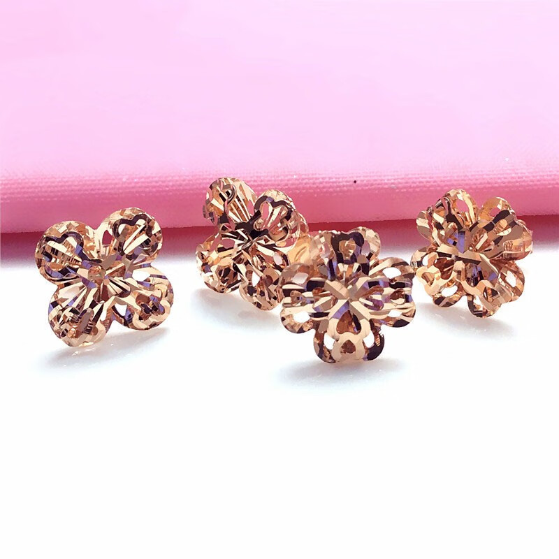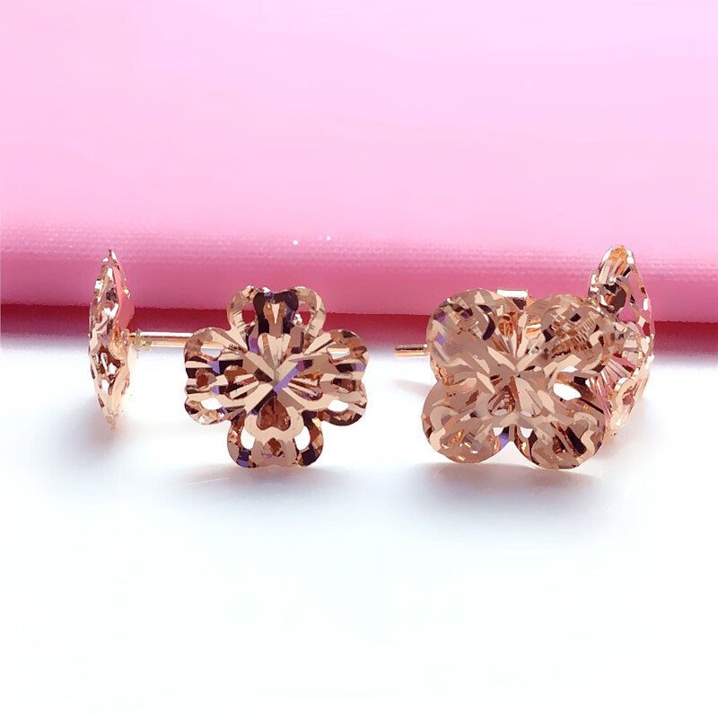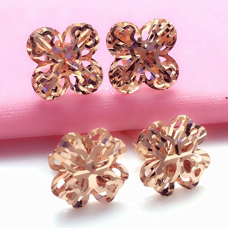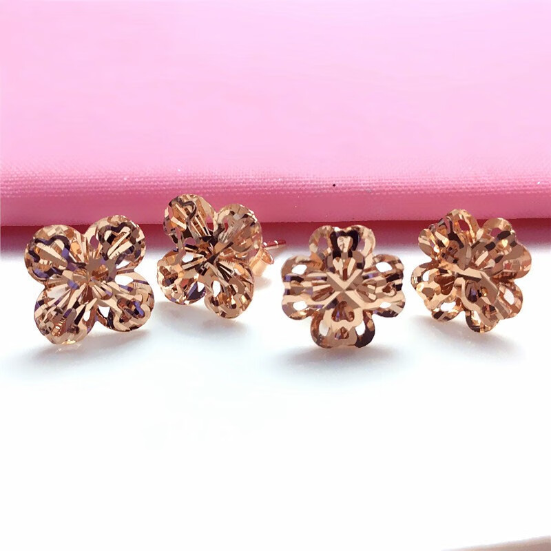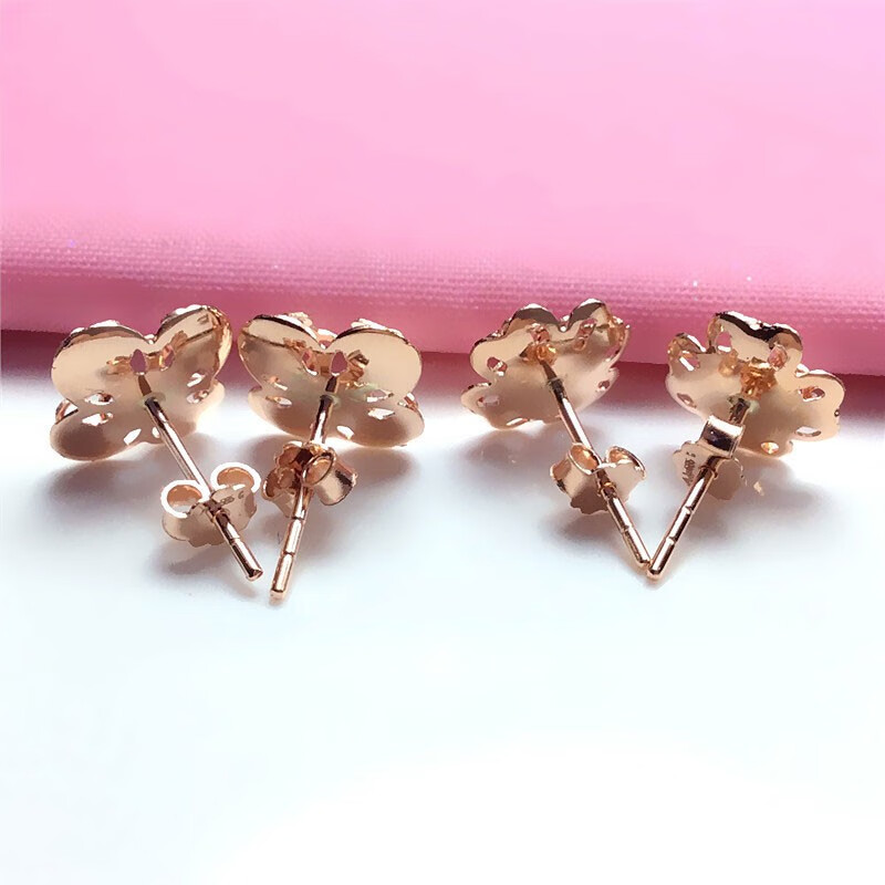 ANST Old Phoenix Gold Store Russian Purple Gold Four-leaf Clover Earrings Plated with 14K Rose Gold Color Gold New Style Simple and Sweet Four-leaf Clover Earrings (Rose Gold Pair)
