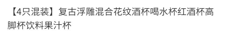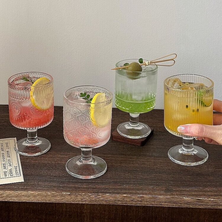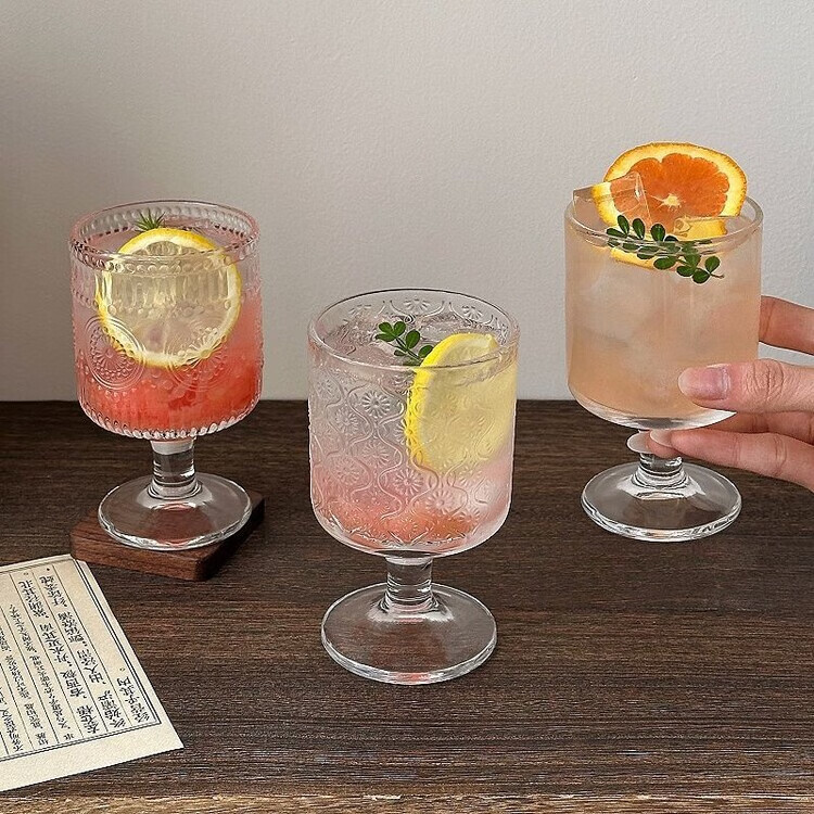 鸣誉【4只混装】复古浮雕混合花纹酒杯喝水杯红酒杯高脚杯饮料果汁杯 混合纹4个