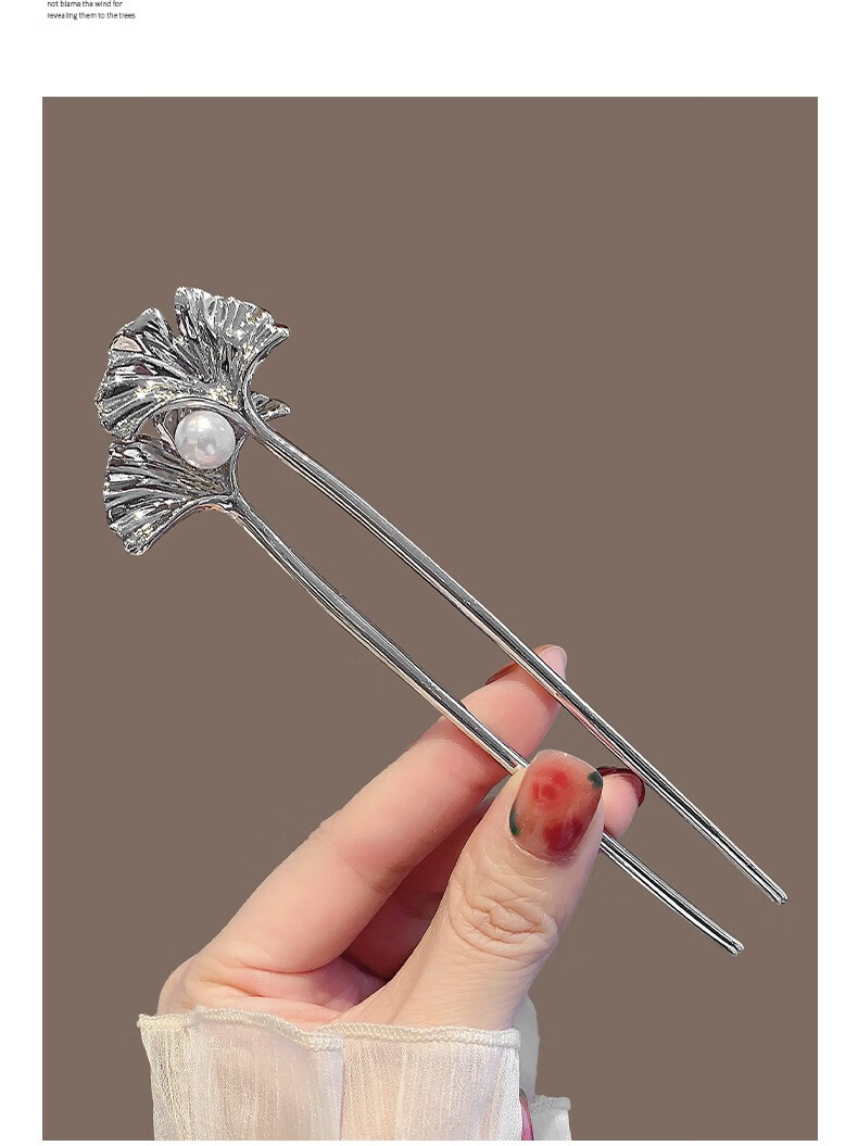Su Shiliu Ginkgo leaf U-shaped hairpin for hair, Chinese style simple and high-end hairpin, ancient style Hanfu accessories, birthday gift for girls, U-shaped almond leaf hairpin - silver