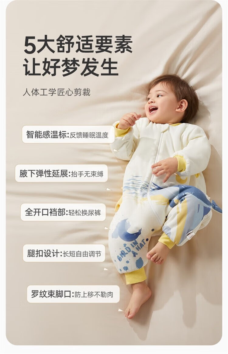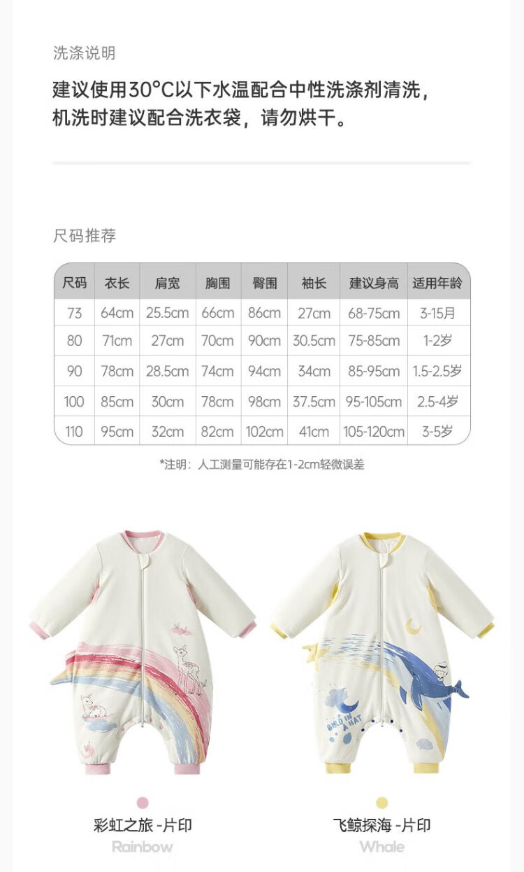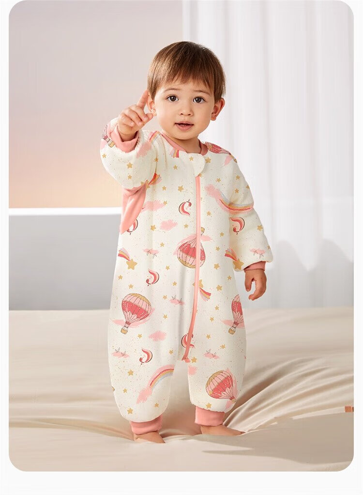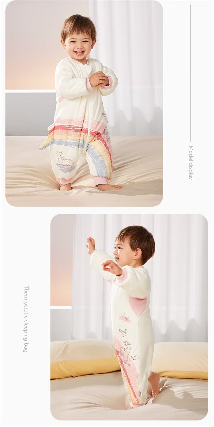 October Crystal Baby Constant Temperature Sleeping Bag Autumn and Winter Four Seasons Pure Cotton Children's Anti-Kick Quilt Rainbow Journey Cold Winter Thick Quilt 5-12 100cm (It is recommended to buy one size larger)