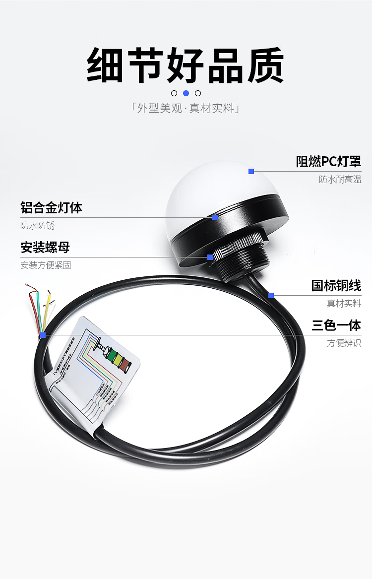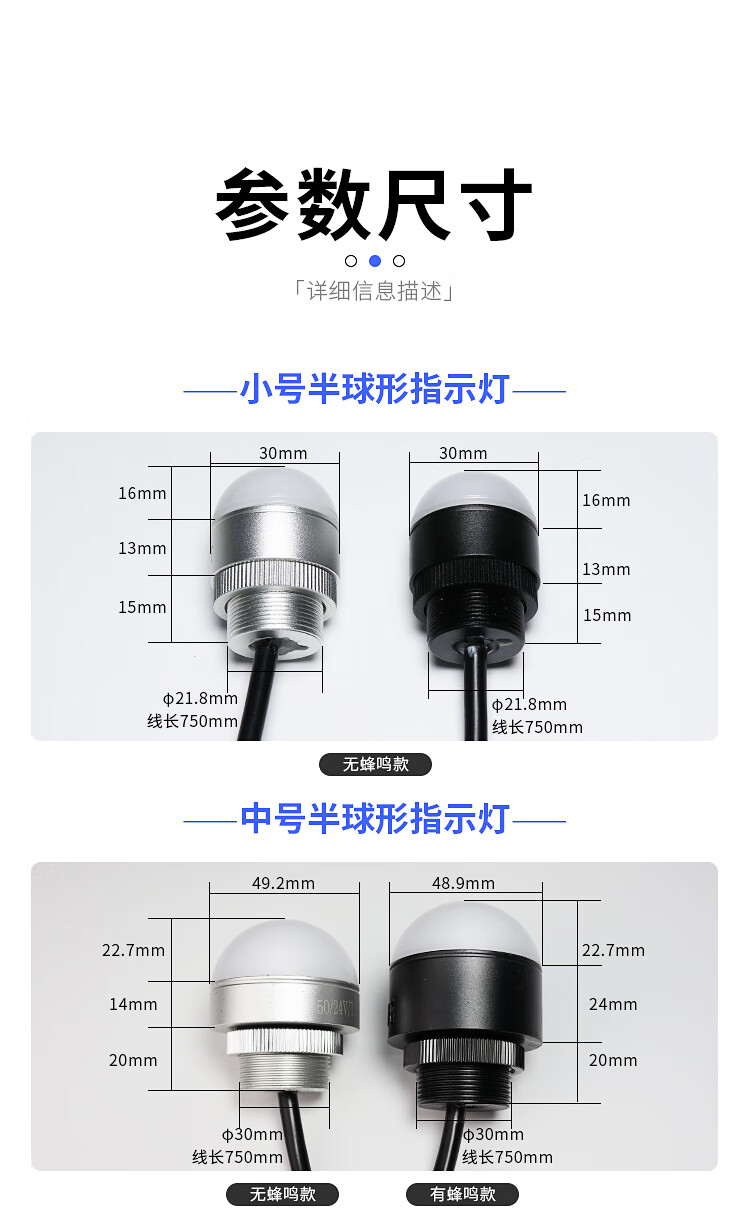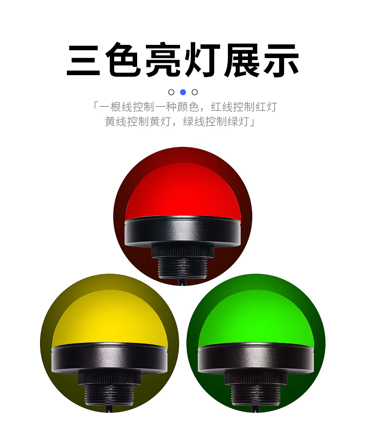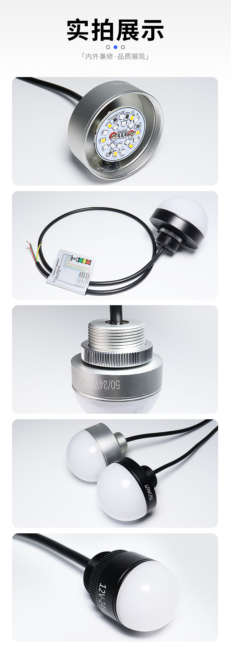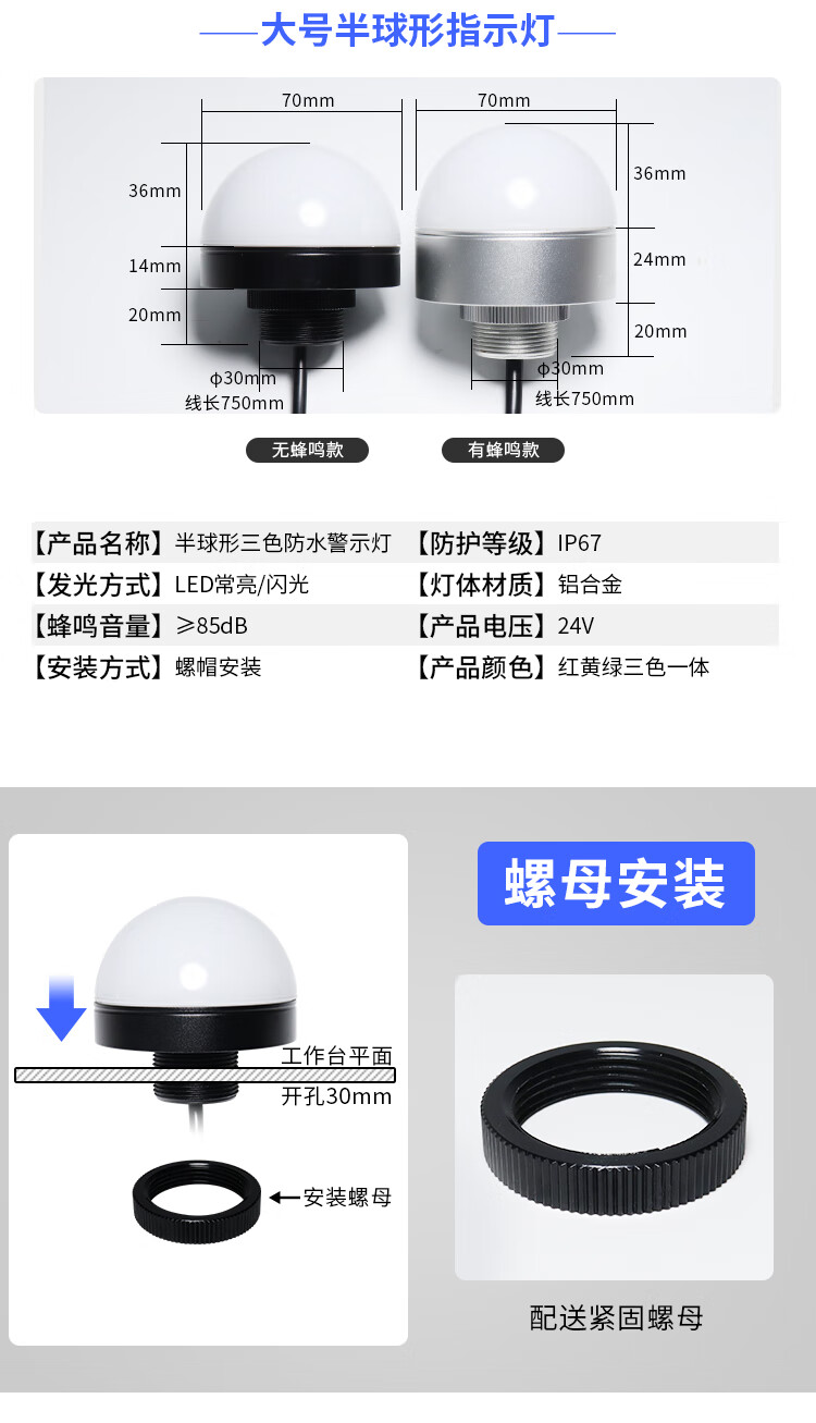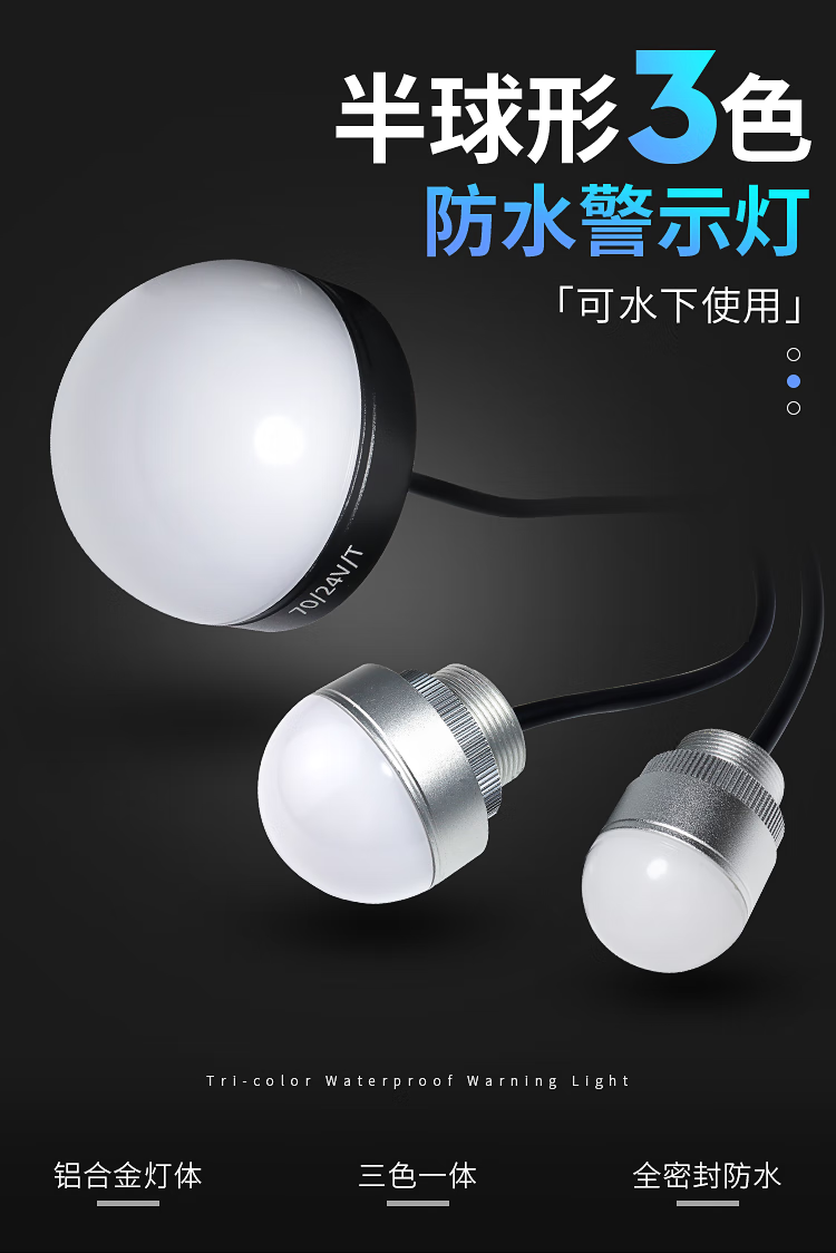 Sound and light alarm metal three-color indicator light Mini LED waterproof spherical equipment warning light semi-circular signal light waterproof three-color always on 24V (30mm)