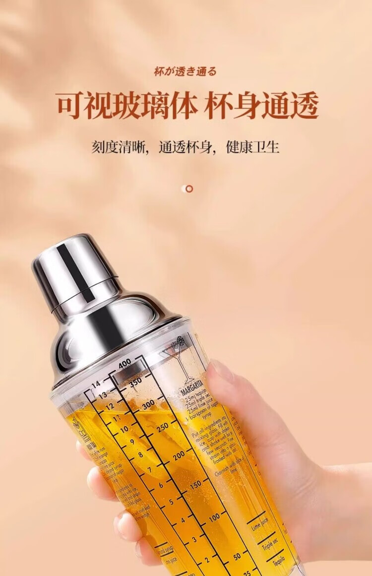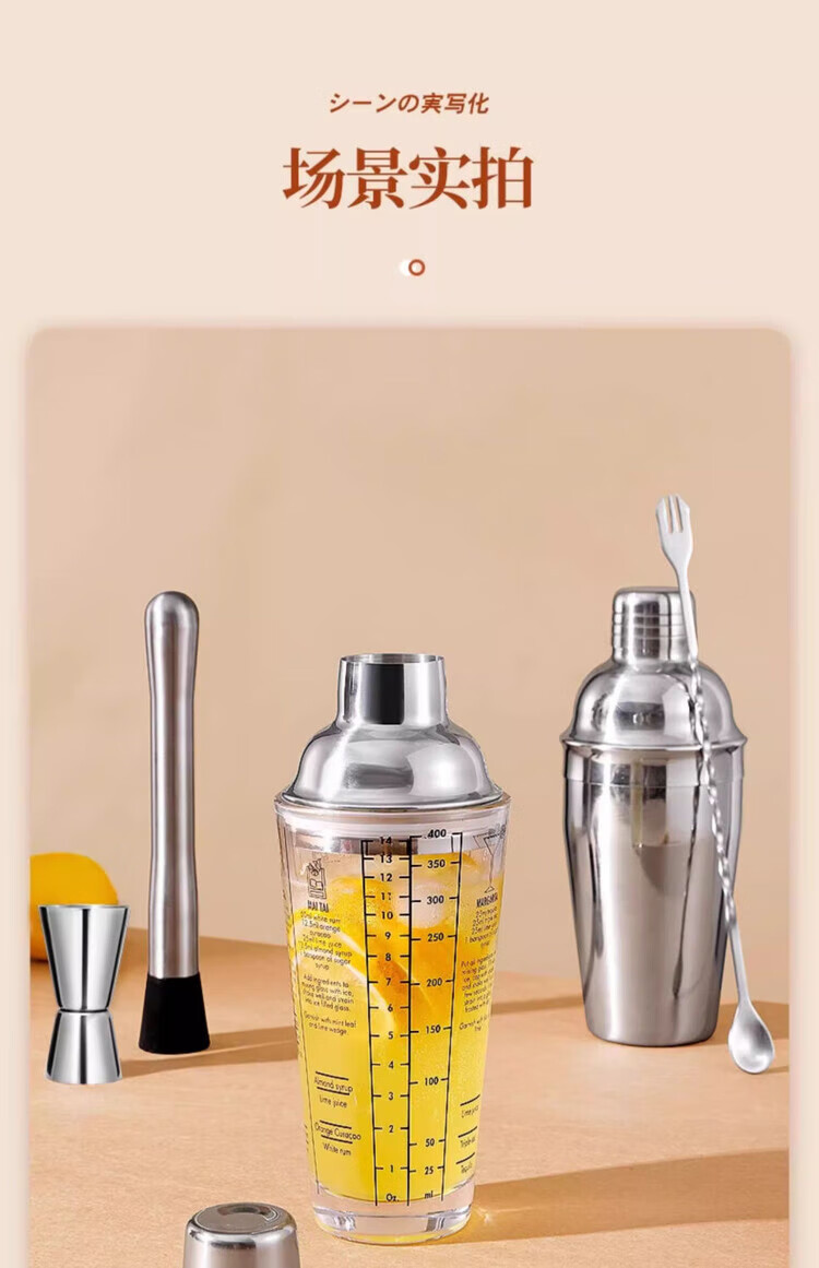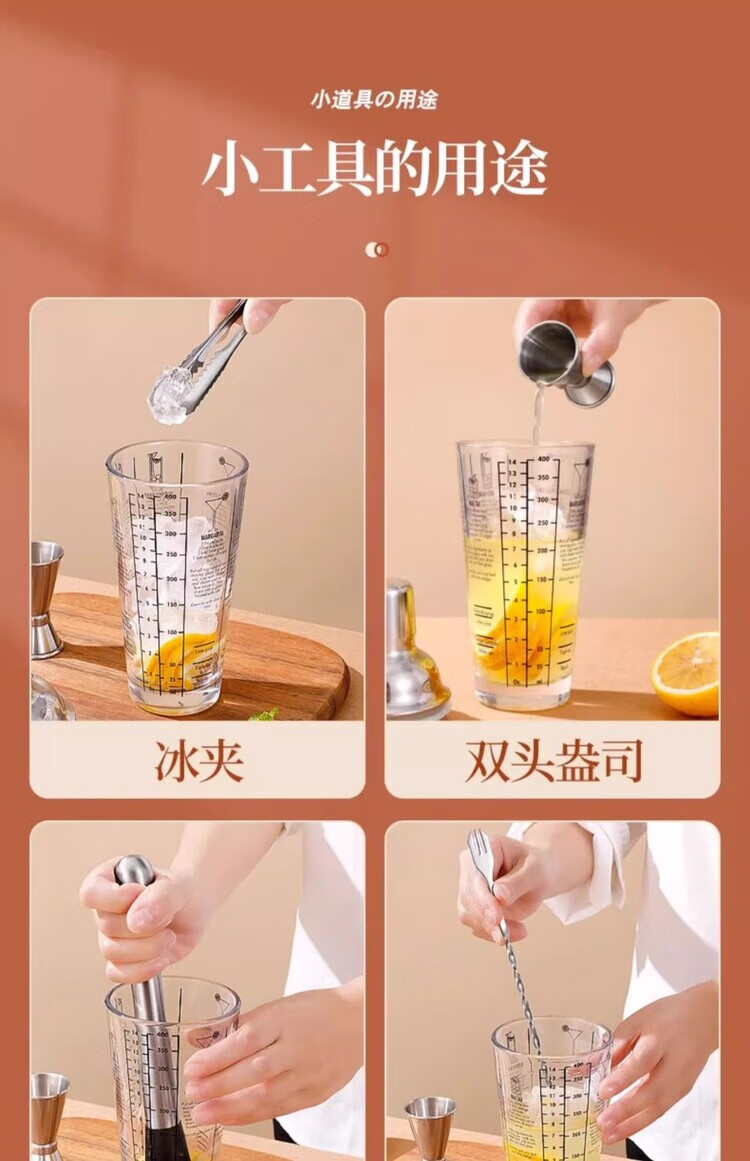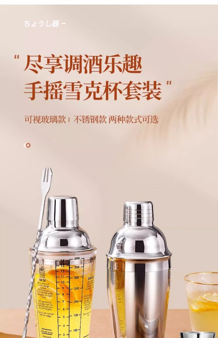 Mingyu Snow Cup Stainless Steel Mixer Set Milk Tea Shop Bartender Tools Shaker Set Entry-level Bartending Tools Set of Four 400ml Glass Style