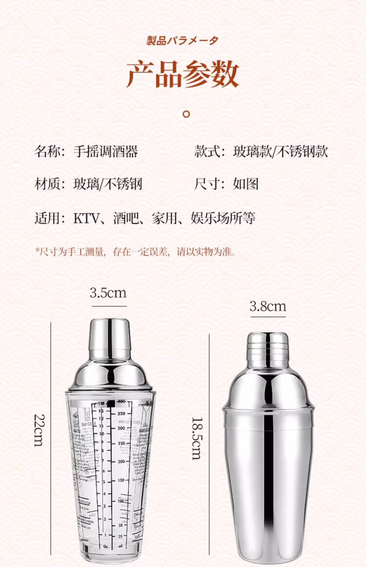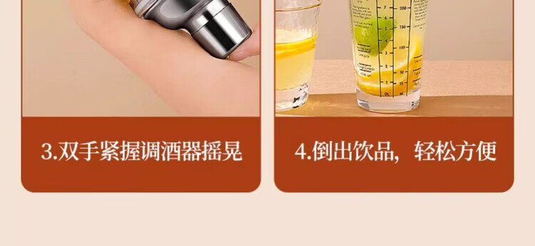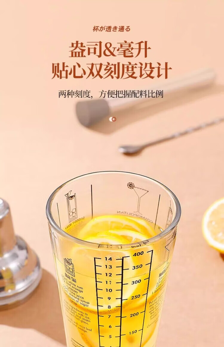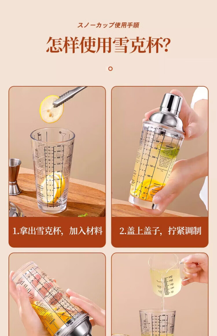 Mingyu Snow Cup Stainless Steel Mixer Set Milk Tea Shop Bartender Tools Shaker Set Entry-level Bartending Tools Set of Four 400ml Glass Style
