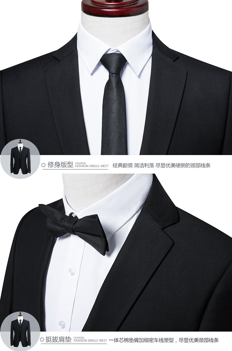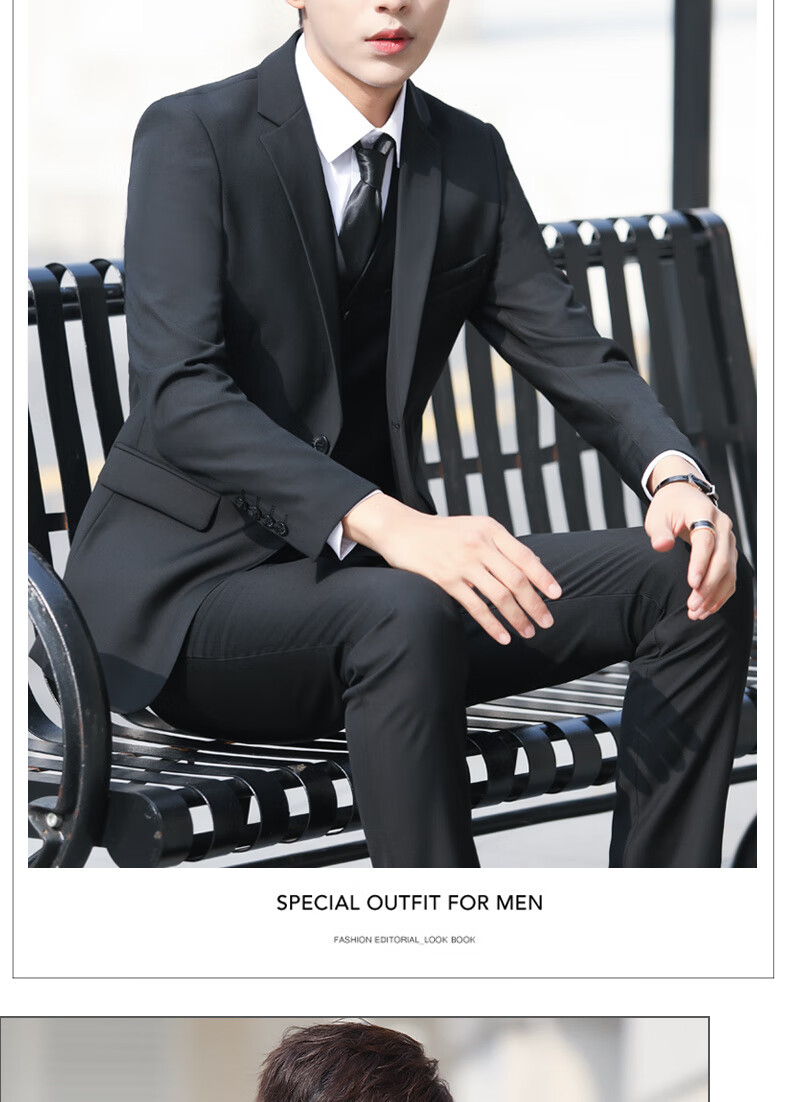 Playboy Suit Men's Summer Teenage Slim Small Suit Professional Formal Groomsman Clothing Wedding and Adult Ceremony Black 2-button Suit Top+Pants+Shirt+Vest L