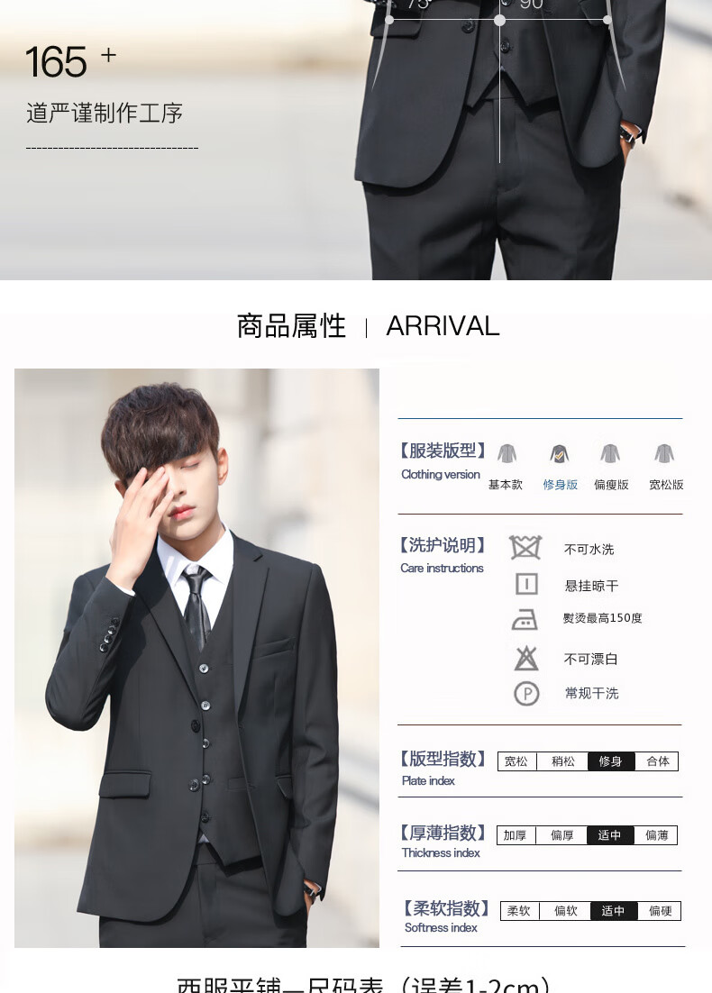 China (cm) 165 / 88-90 170 / 96-98 175 / 108-110 180 / 118-122 185 / 126-130