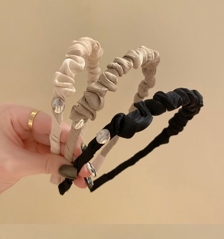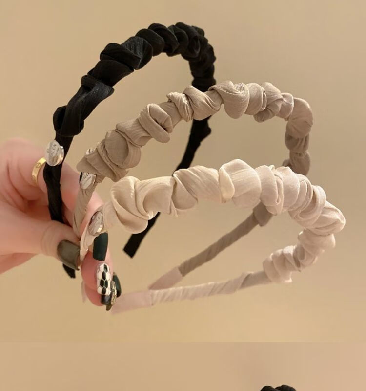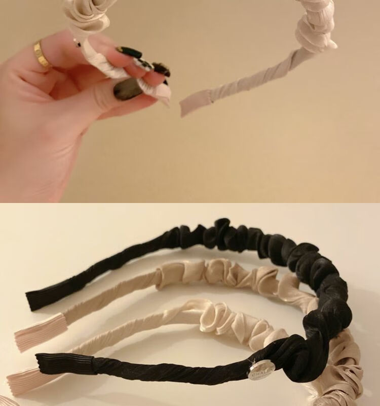 Women's 2025 New Retro Elegant Temperament Headband Pressed Hair Headband with Spring Flowers and Light Luxury Streaming Folded Thin Hairband - Black